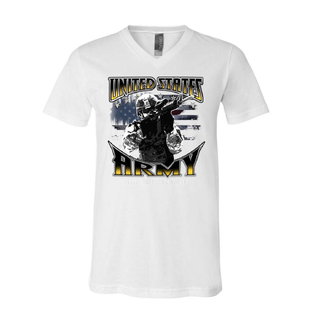 UNITED STATES ARMY FULL BATTLE RATTLE united states army v-neck t-shirt american soldier full battle rattle tee white