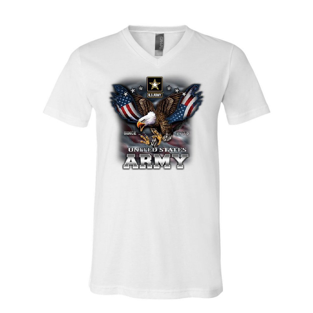 UNITED STATES ARMY BLAD EAGLE united states army v-neck t-shirt bald eagle army strong since 1775 usa tee white