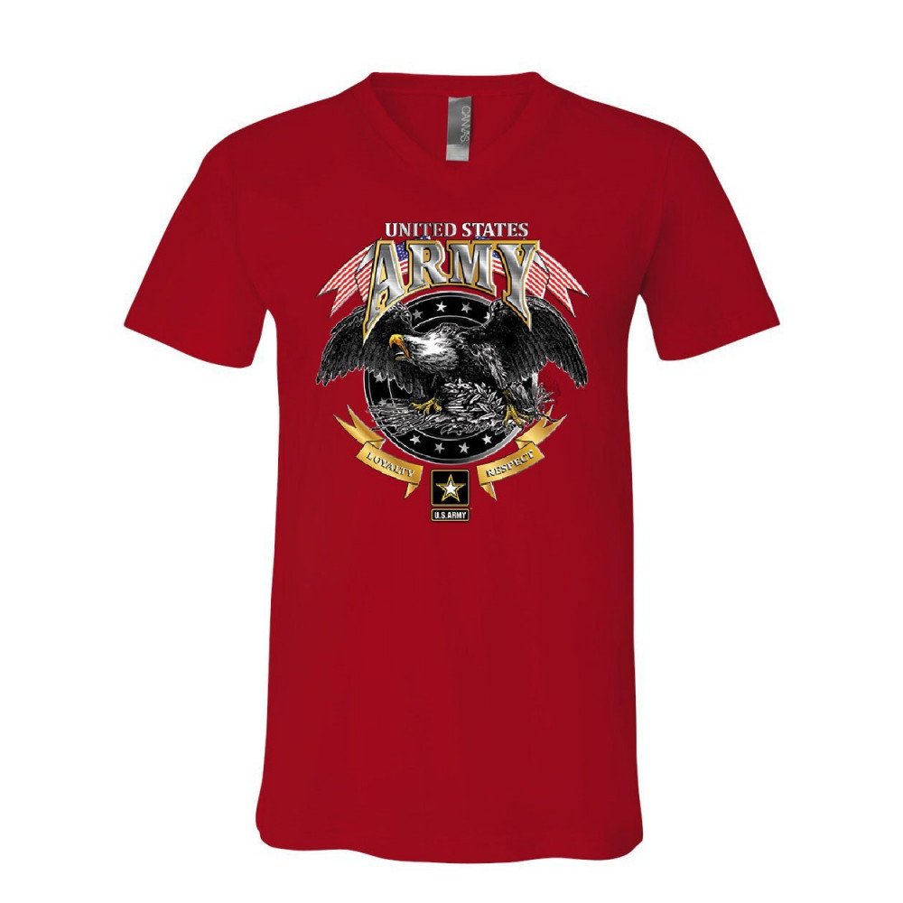 UNITED STATES ARMY v-neck t-shirt loyalty respect bald eagle pow mia tee red