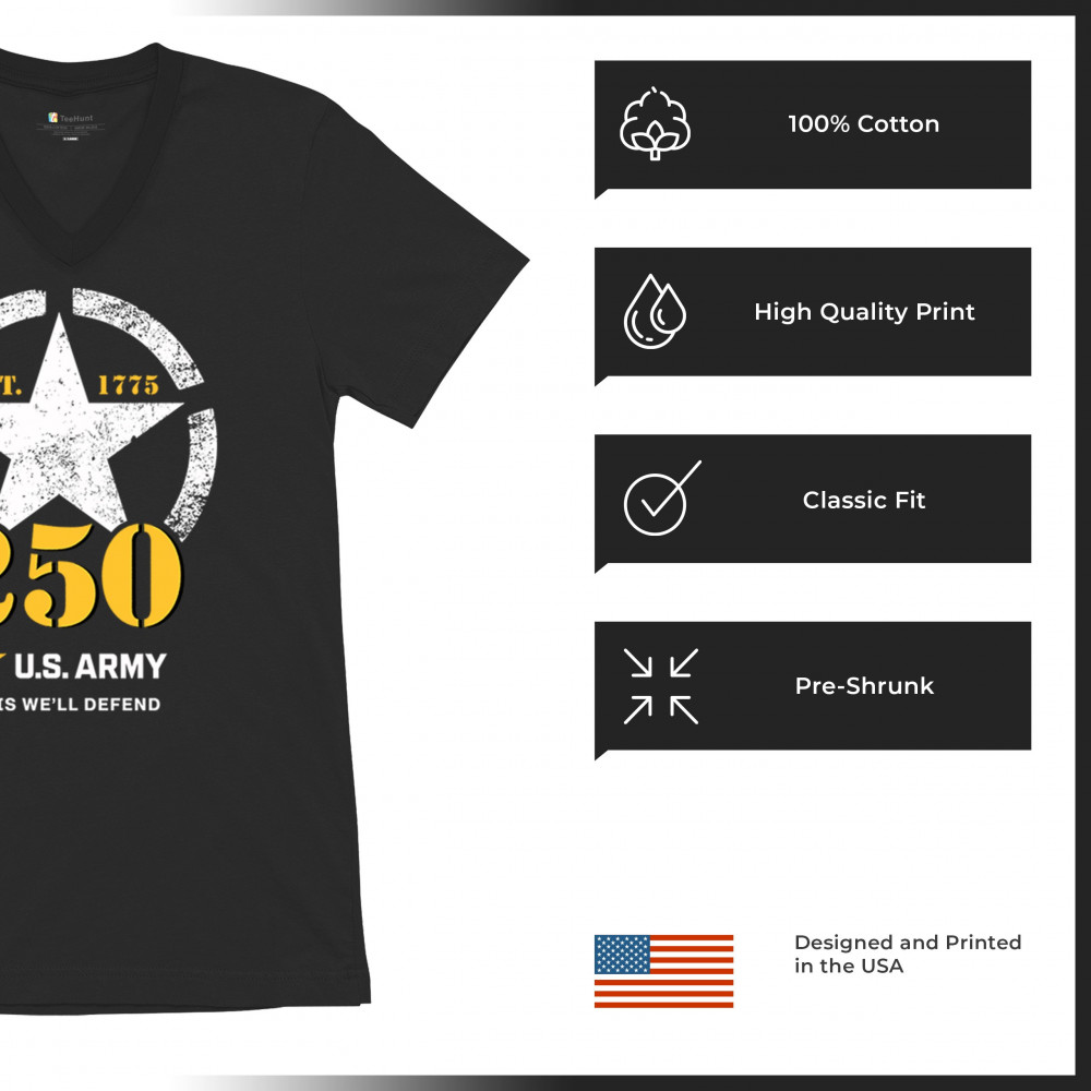 US ARMY 250TH ANNIVERSARY v-neck t-shirt military veteran american pride tee black
