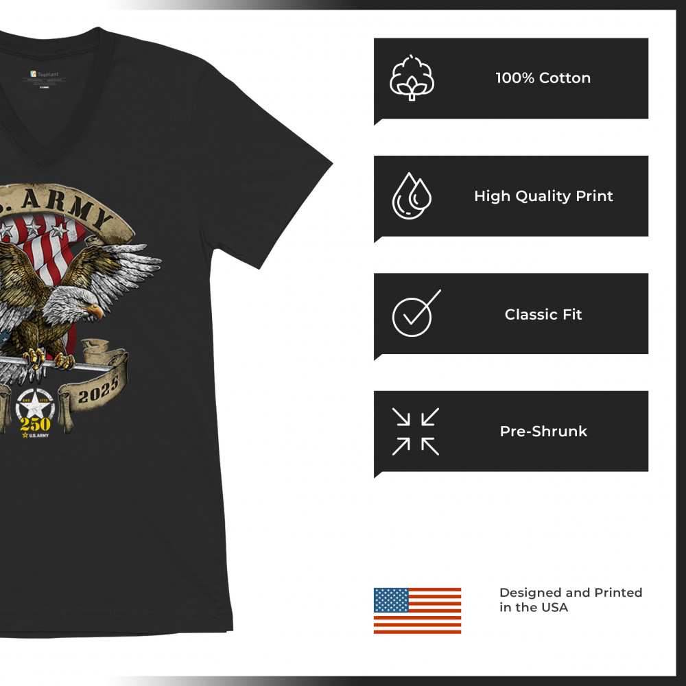 Celebrate the U.S. Army’s 250th Anniversary with patriotic eagle art, Army apparel, Veterans Day pride, and American freedom tribute.