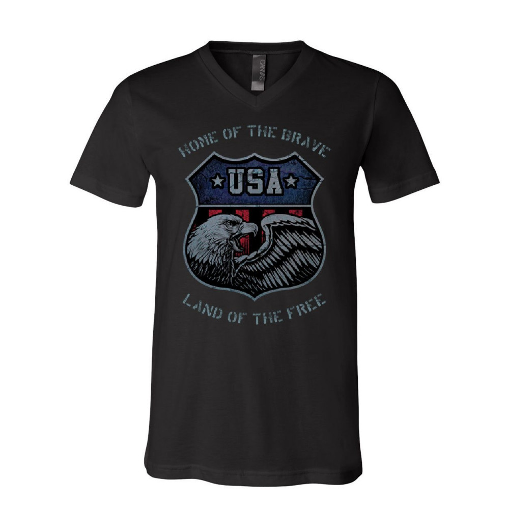 USA SHIELD PATRIOTIC v-neck t-shirt home of the brave land of the free tee black