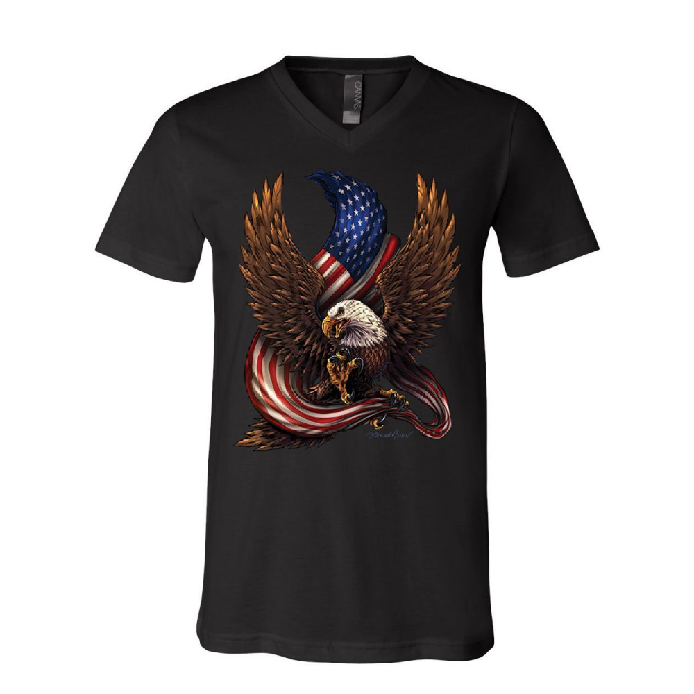 AMERICAN BALD EAGLE usa stars and stripes v-neck t-shirt patriot american pride bald eagle tee black