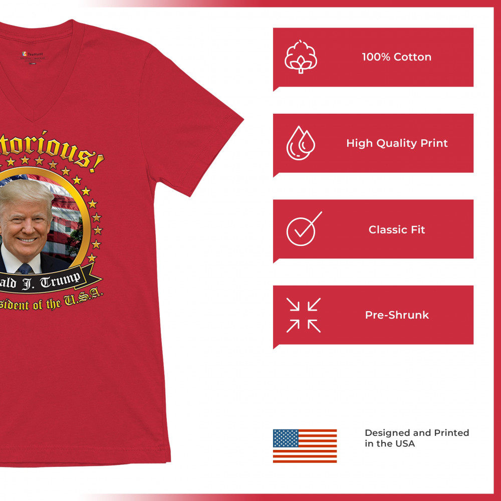 The "Victorious" design captures the spirit of Donald J. Trump’s victory as the 47th President, embodying the pride and patriotism of true American supporters. With elements of the American flag and an inspiring message, it’s a perfect symbol for Republicans, conservatives, and America First advocates. Celebrate the Red Wave and stand for a strong, united nation. Perfect for showing support at rallies, gatherings, or casual wear.