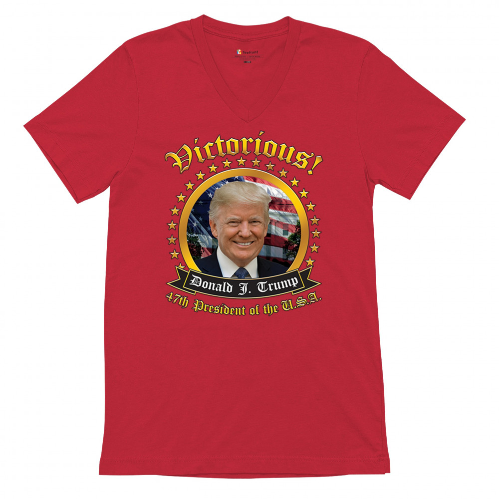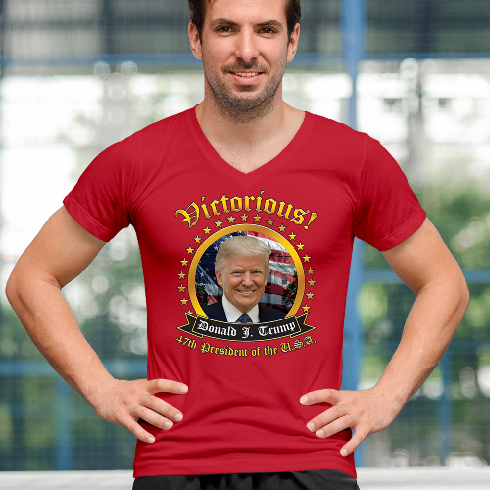 Showcase your support for Trump as the 47th President with this "Victorious" design. Perfect for patriots, America First advocates, and Red Wave supporters.