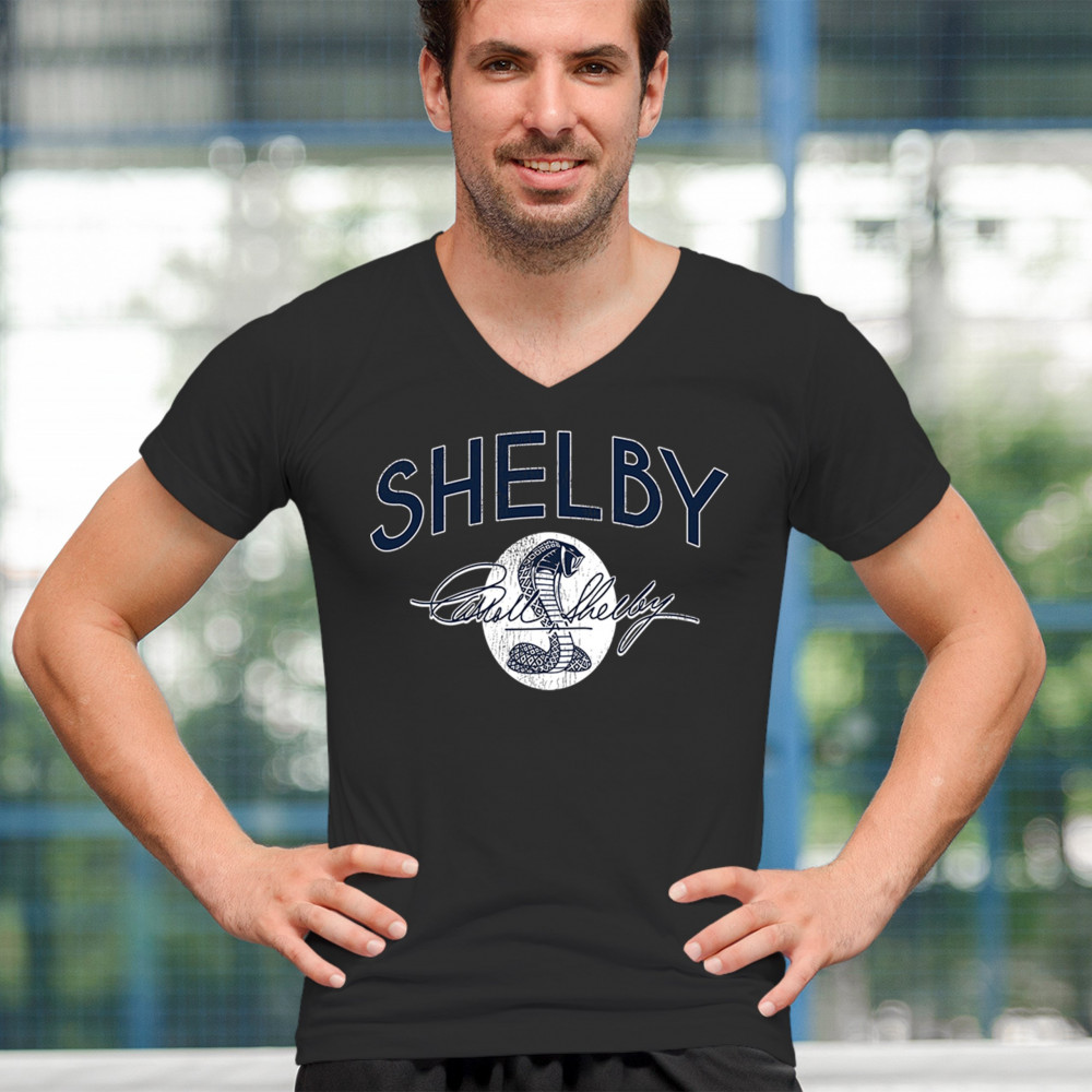 VINTAGE SHELBY COBRA LOGO v-neck t-shirt mustang gt500 gt powered by ford tee black