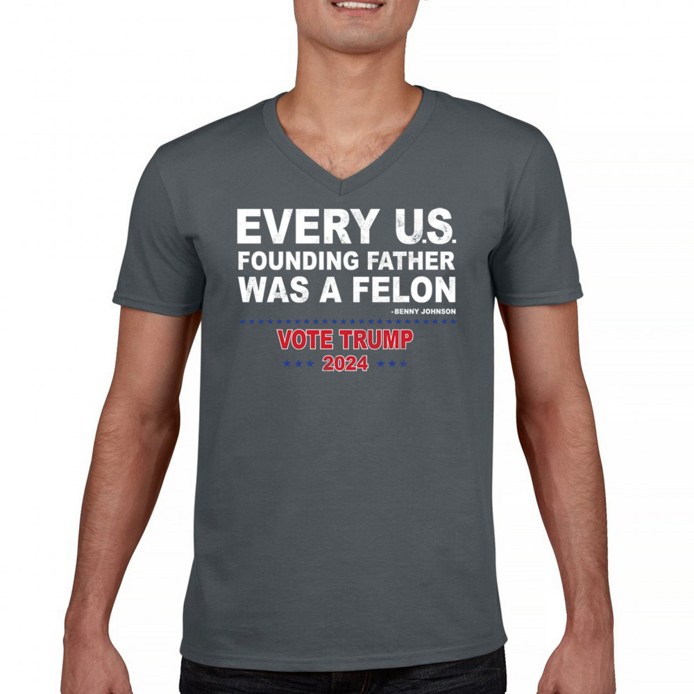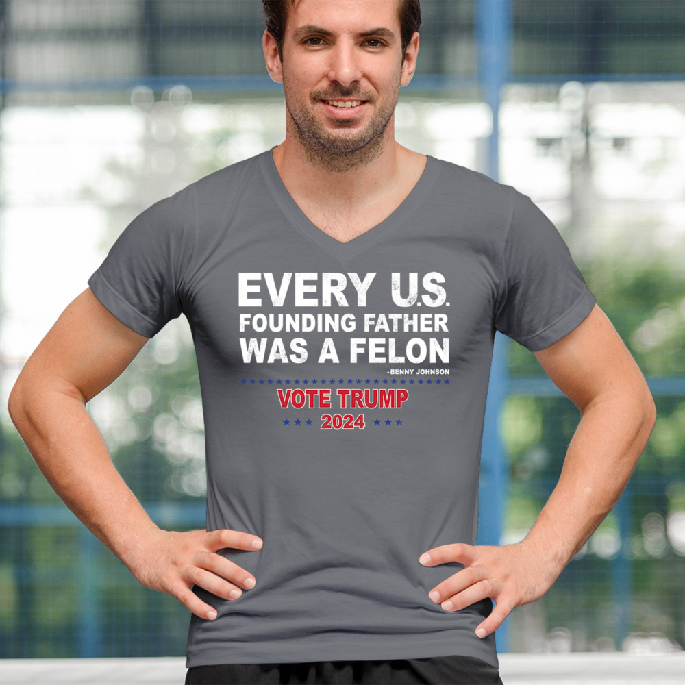 Show your support for Trump 2024 with a bold design quoting "Every U.S. founding father was a felon." Stand against political attacks and support an America-first vision.