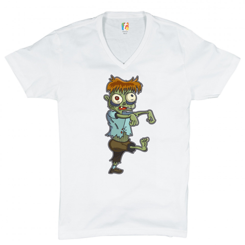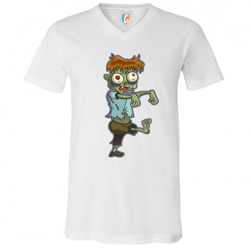 A print featuring a zombie, walking in a stereotypical movie fashion with the arms extended forward. The zombie has messy ginger hair and eyes popping out but he looks rather funny and non-threatening. A great choice for a person who is into horror movies