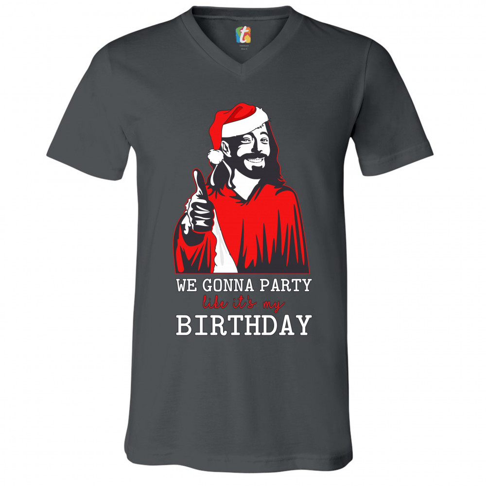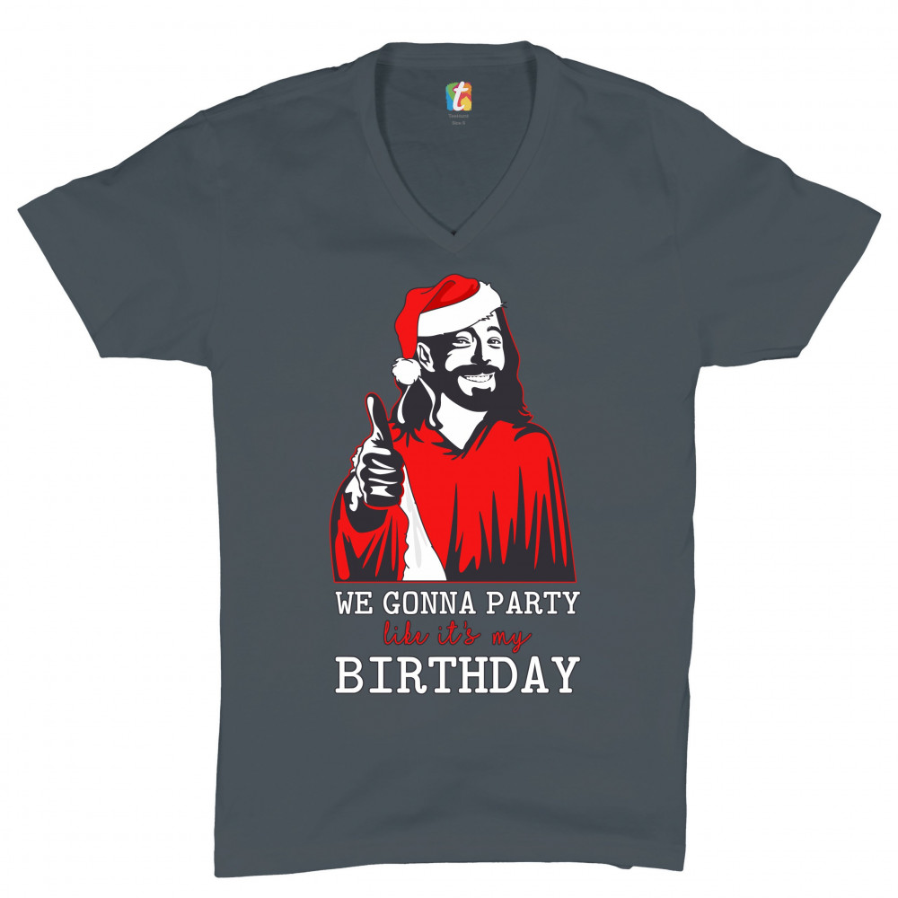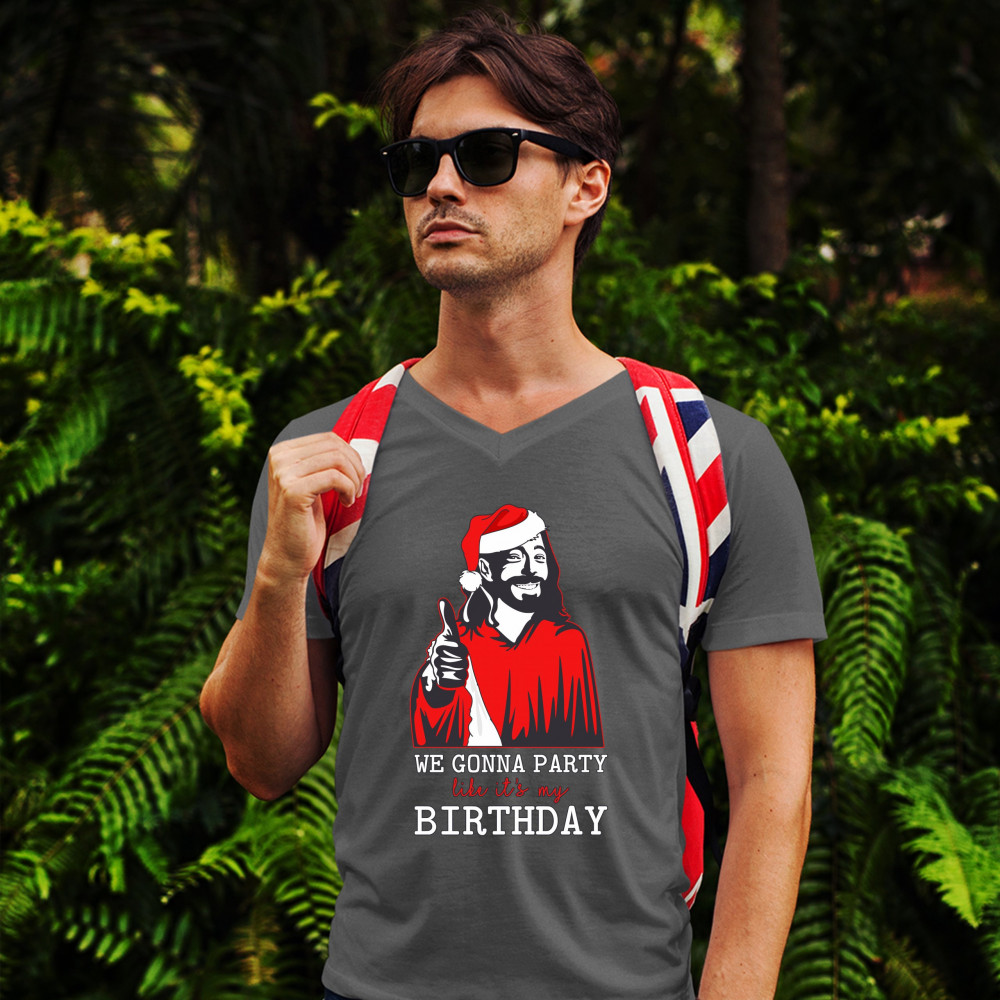 WE GONNA PARTY LIKE IT'S MY BIRTHDAY v-neck t-shirt jesus christ xmas tee charcoal