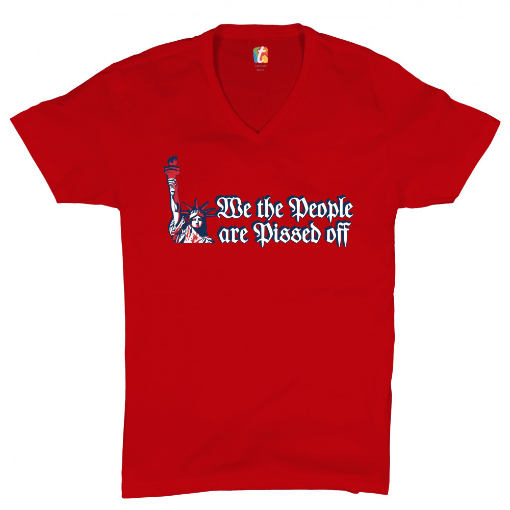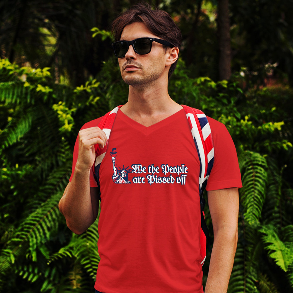 WE THE PEOPLE ARE PISSED OFF v-neck t-shirt statue of liberty patriotic tee red