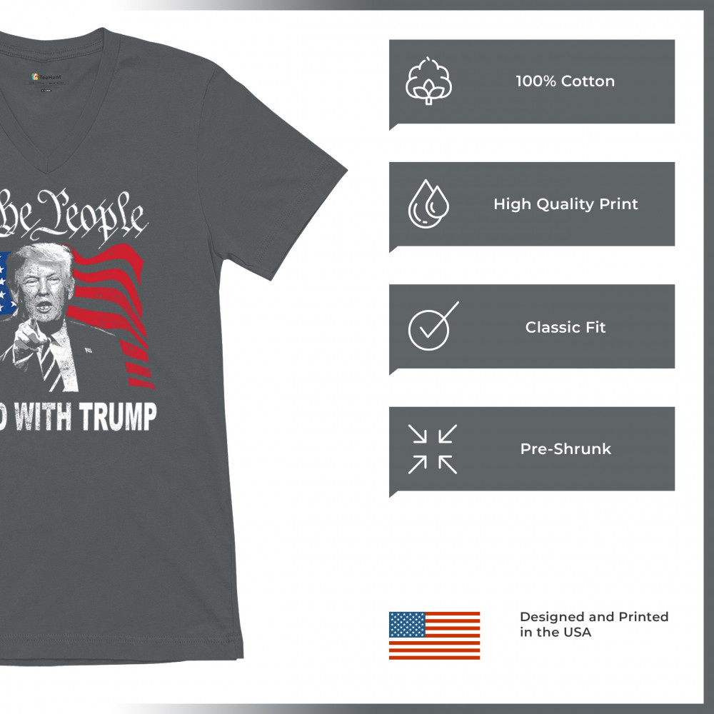 Express your allegiance to President Trump with the "We the People Stand with Trump" design. This compelling design showcases a determined Trump pointing forward, set against the iconic American flag, symbolizing strength and patriotism. It's a perfect choice for rallies and gatherings, proudly representing conservative values and the fight against leftist agendas. Stand up for America's future and make a statement with this design, supporting the principles of freedom and democracy. An essential addition for any Trump supporter dedicated to the conservative cause.