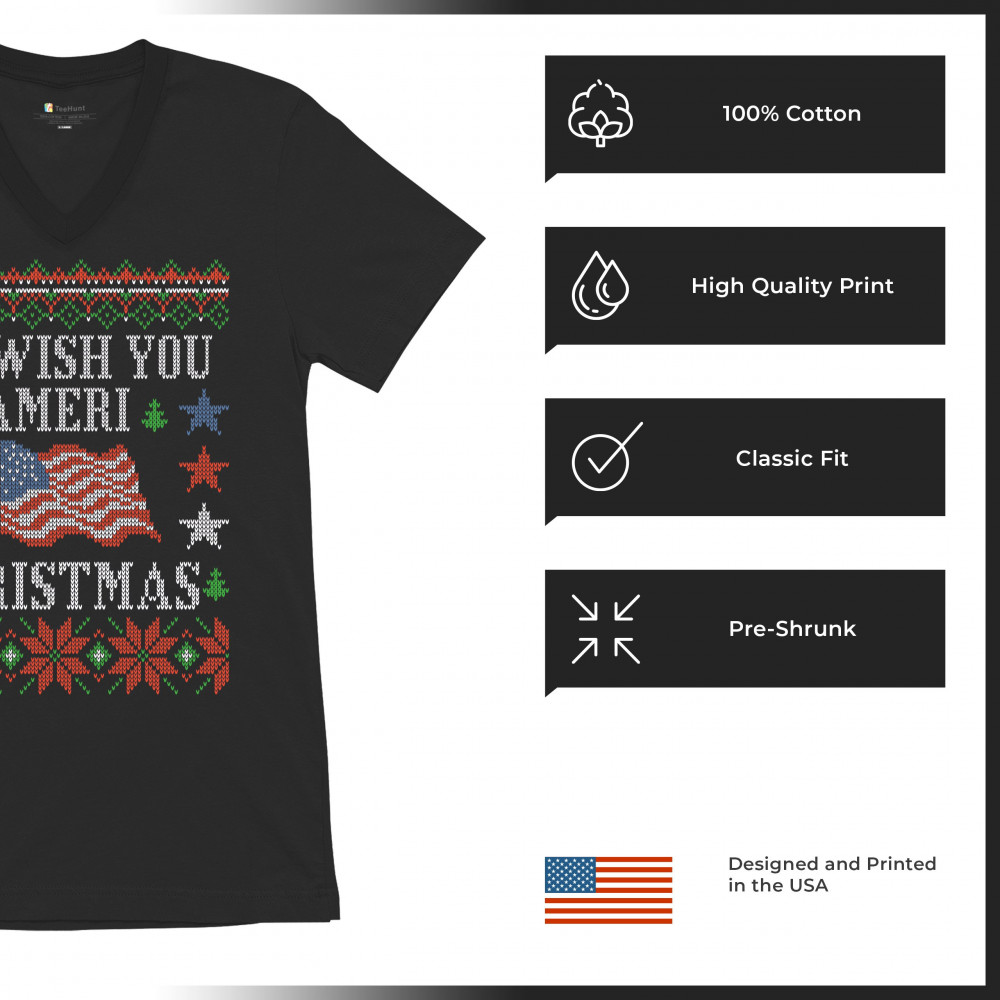 WE WISH YOU AMERI CHRISTMAS v-neck t-shirt ugly sweater american flag tee black