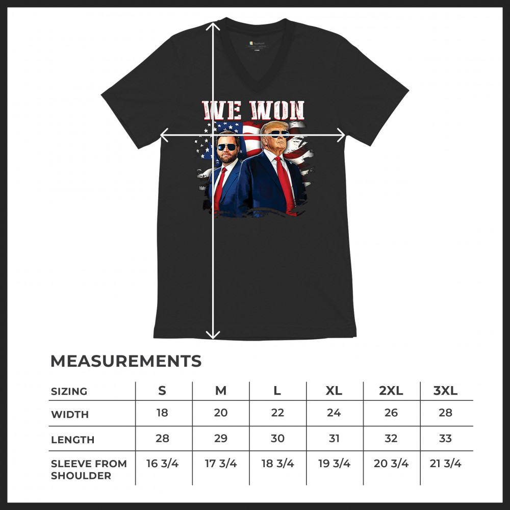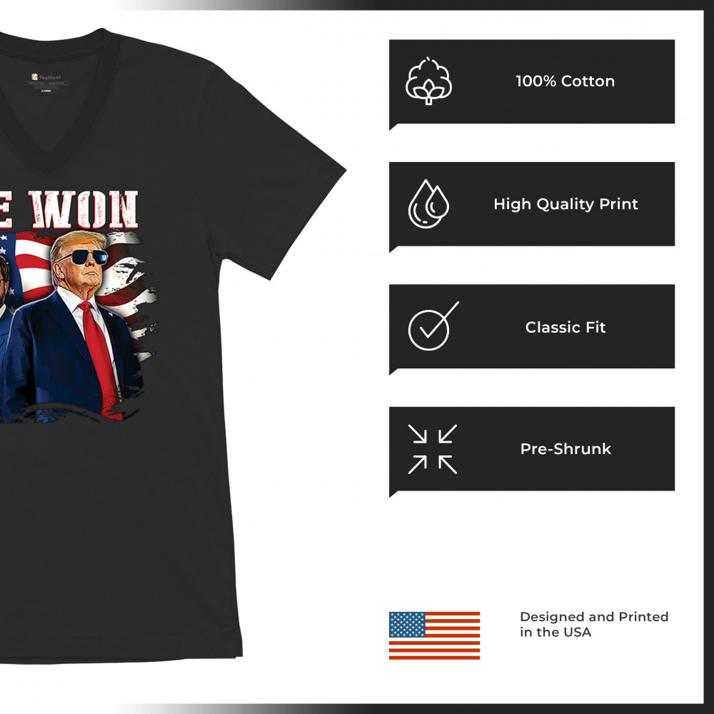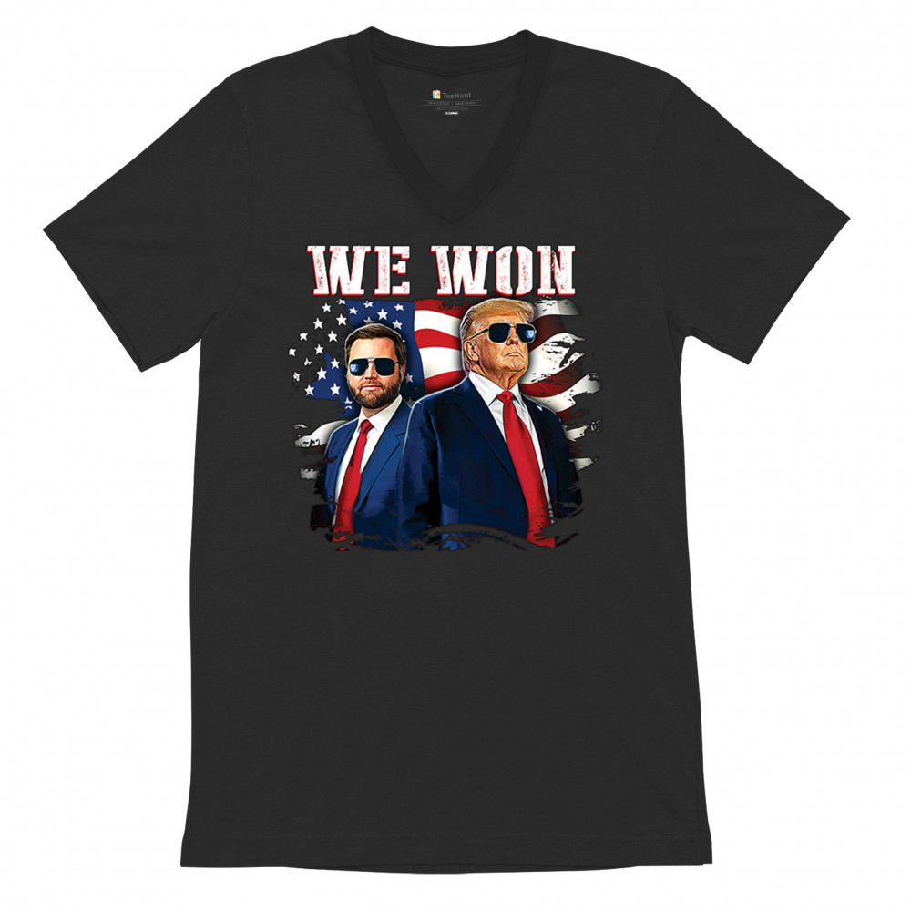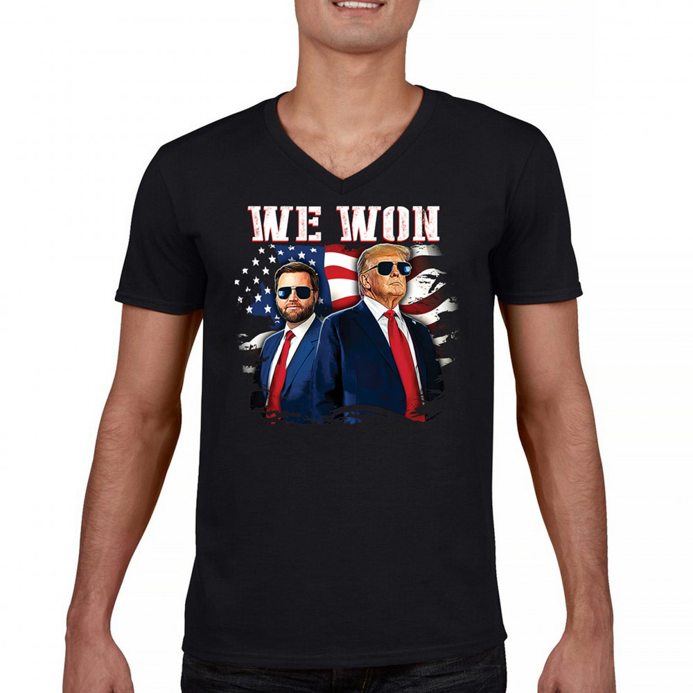 Celebrate Republican victory with this bold "We Won" design featuring Trump and patriotic flair—perfect for rallies, events, and patriotic pride.