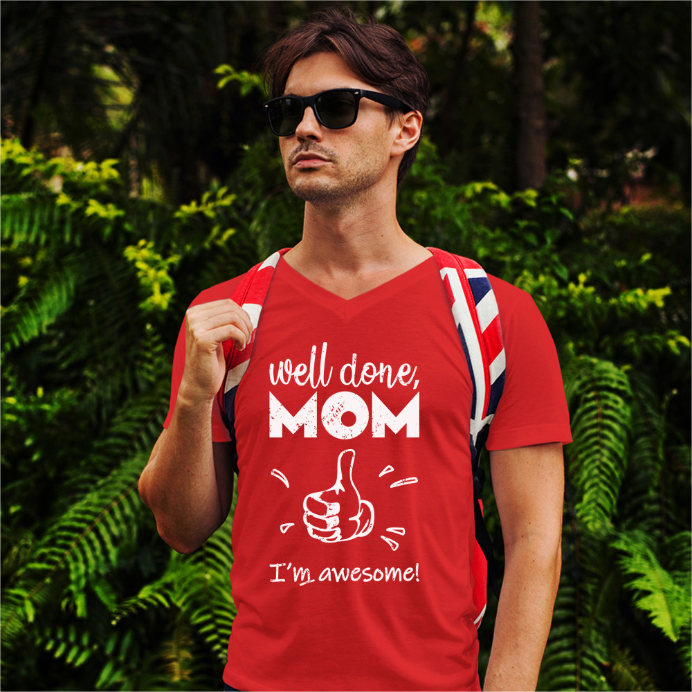 WELL DONE MOM I'M AWESOME v-neck t-shirt mother's day i love you mom mommy tee red