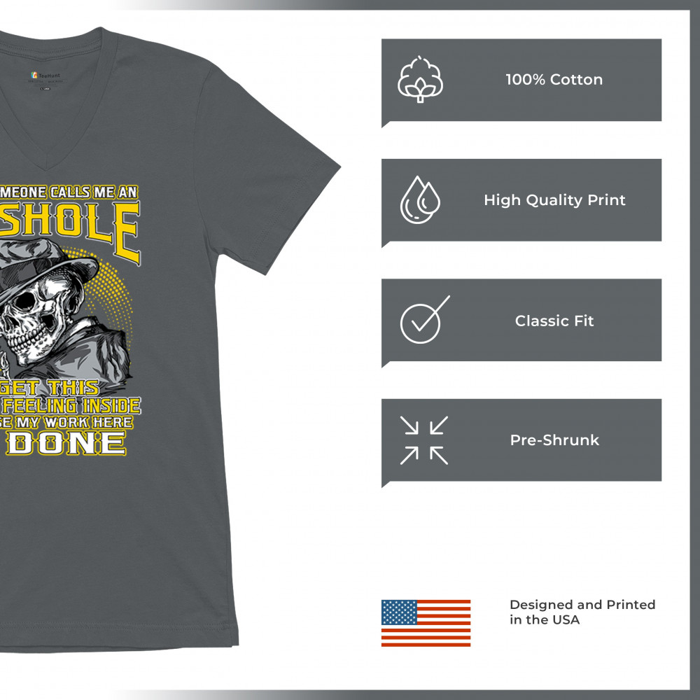 This badass design features a smirking skull in a fedora with a cigarette, backed by the line: “When someone calls me an asshole... my work here is done.†Built for dark humor fans, skull art lovers, and those who live life with sharp wit and zero regrets. Ideal for biker rallies, sarcasm nights, or anyone owning their attitude with pride.