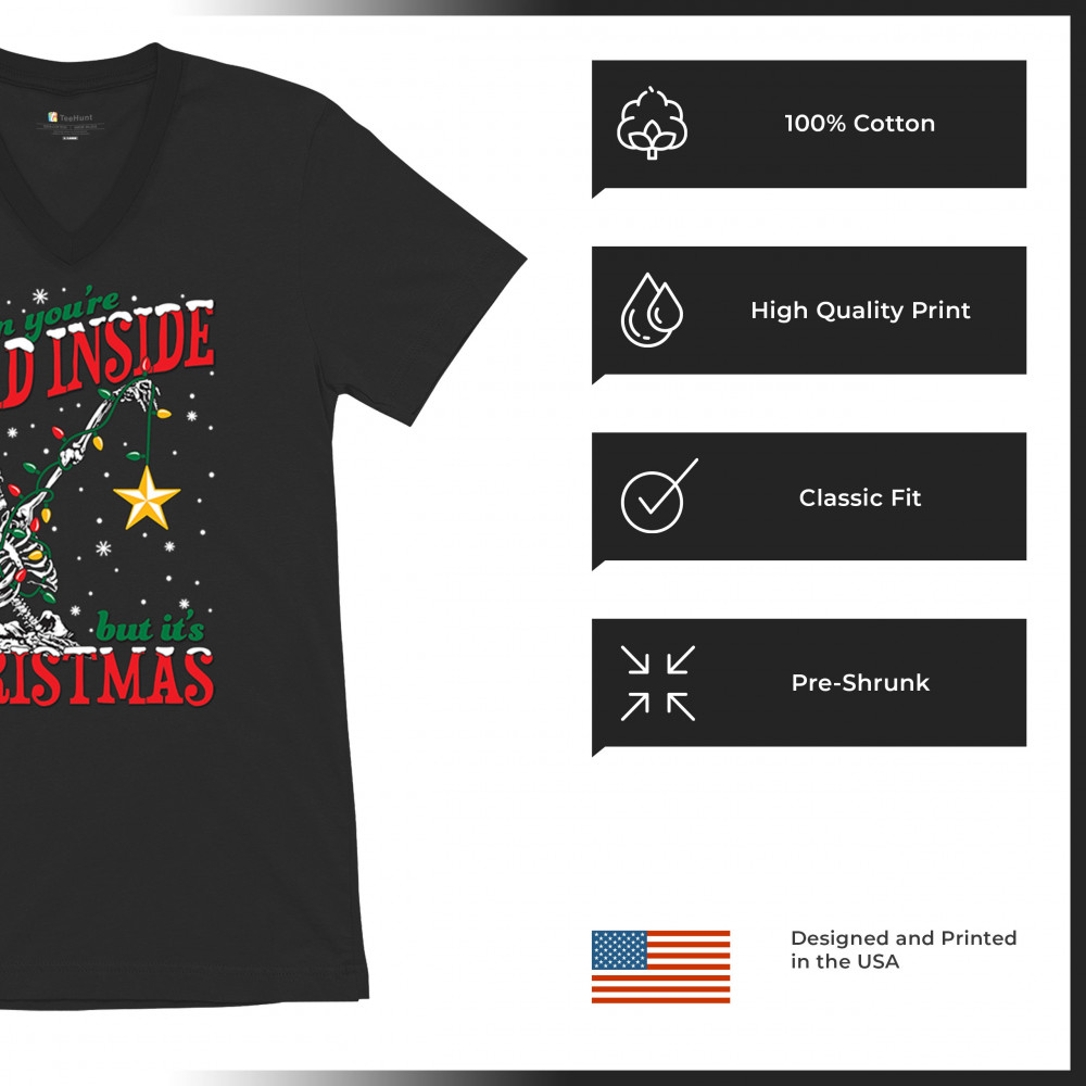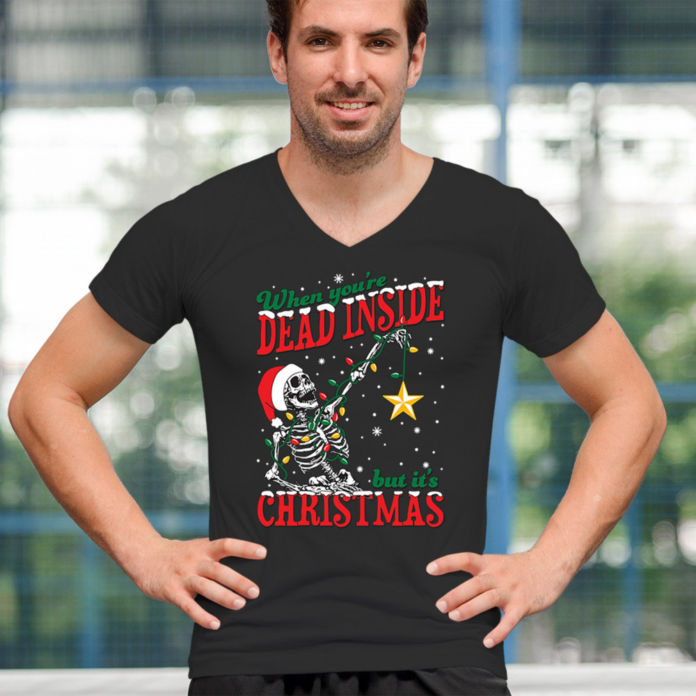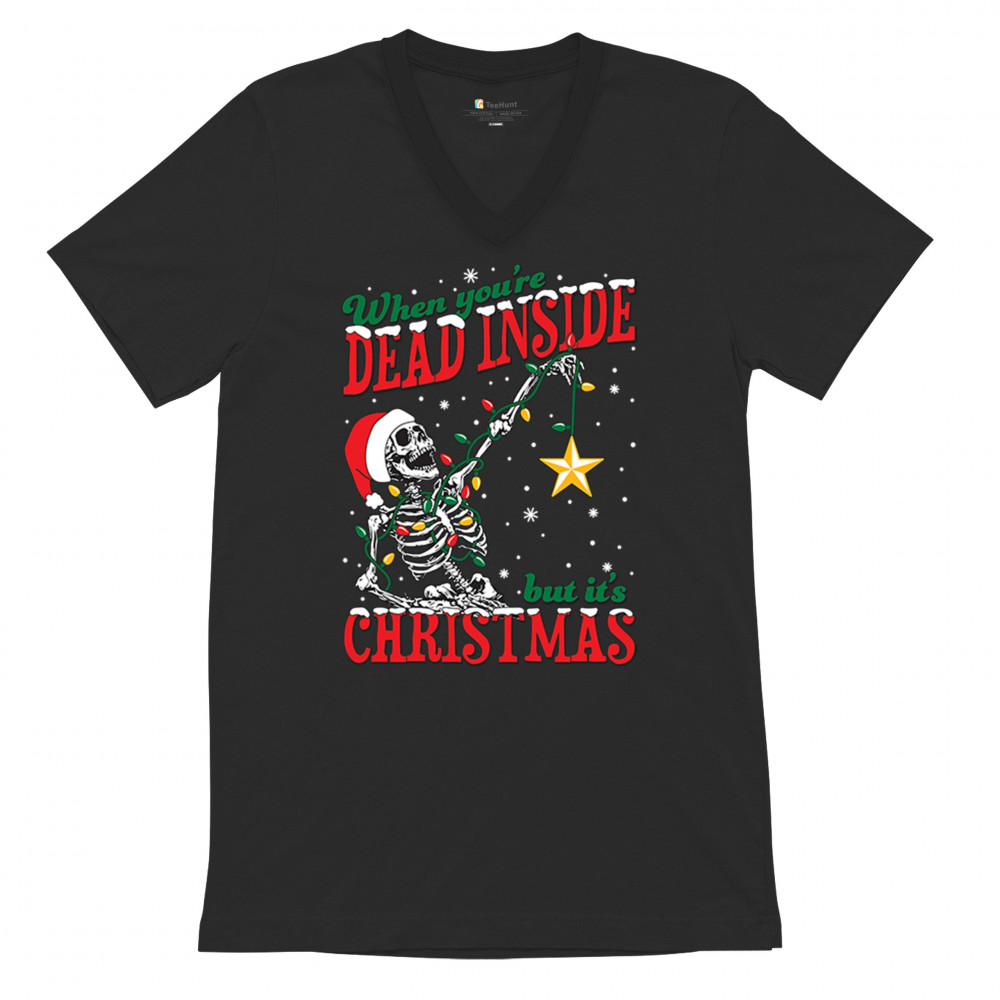 Celebrate humor and holiday spirit with the "When You're Dead Inside But It's Christmas" skeleton design. Perfect for parties and unique gifts.