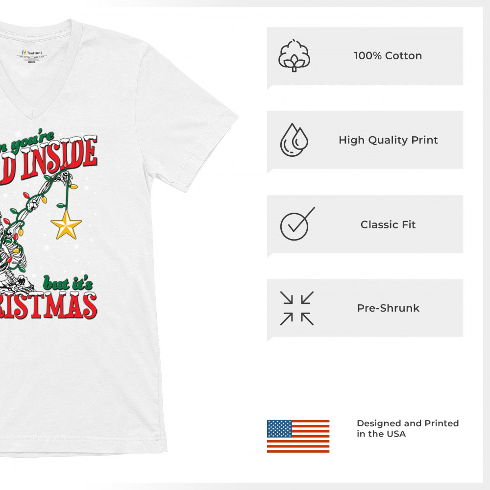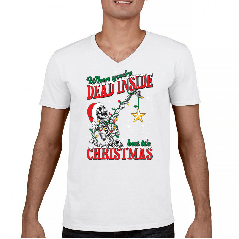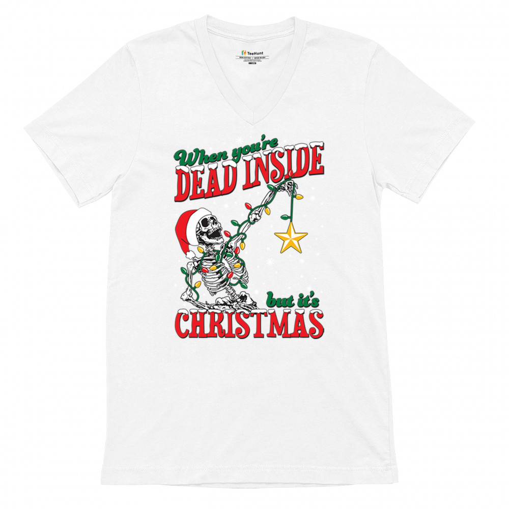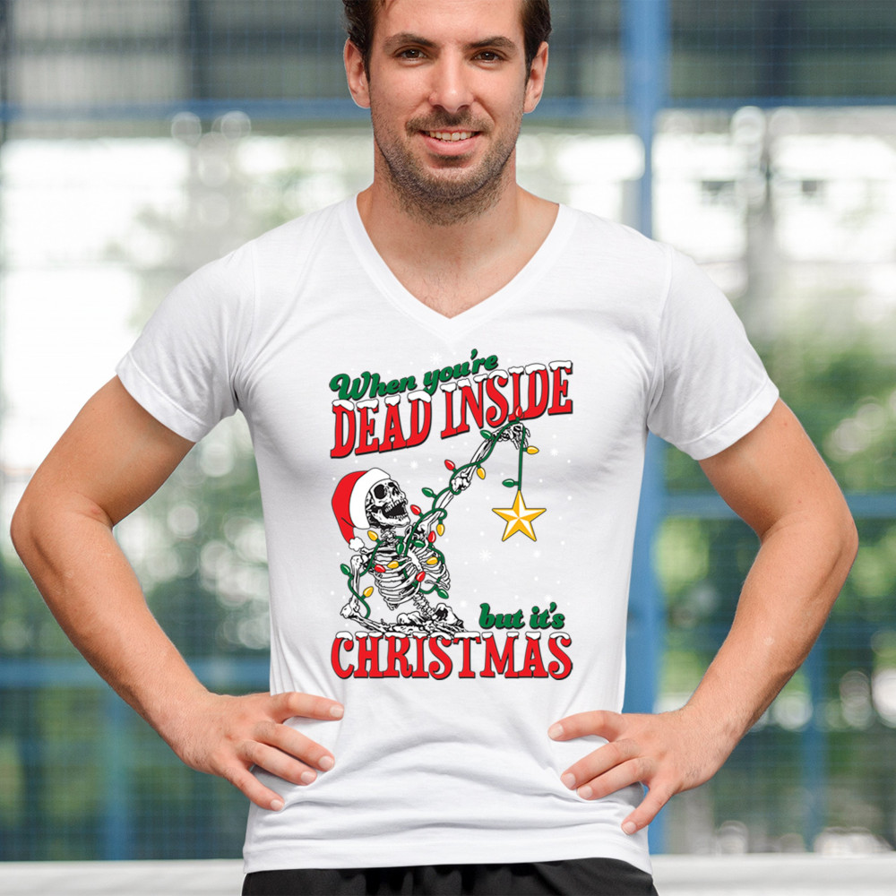 Celebrate humor and holiday spirit with the "When You're Dead Inside But It's Christmas" skeleton design. Perfect for parties and unique gifts.