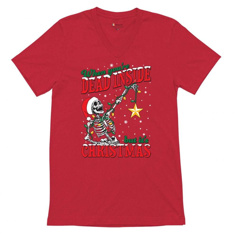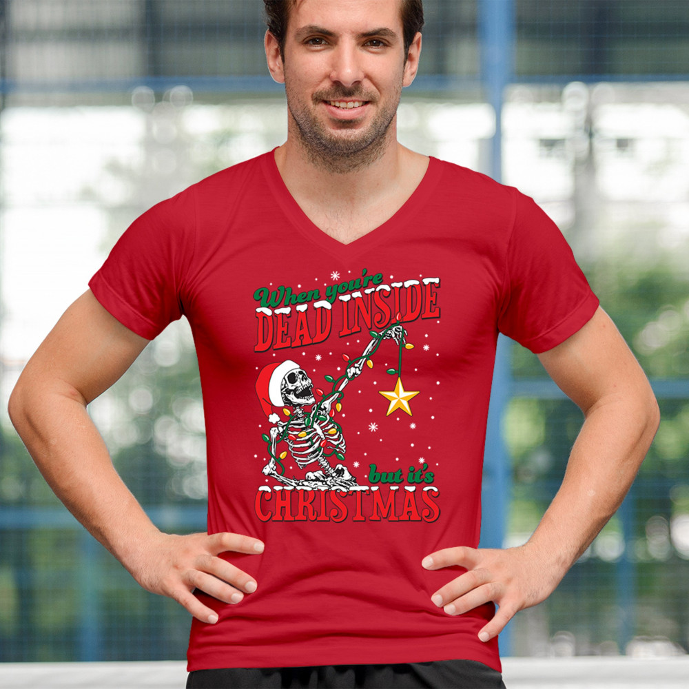 Celebrate humor and holiday spirit with the "When You're Dead Inside But It's Christmas" skeleton design. Perfect for parties and unique gifts.