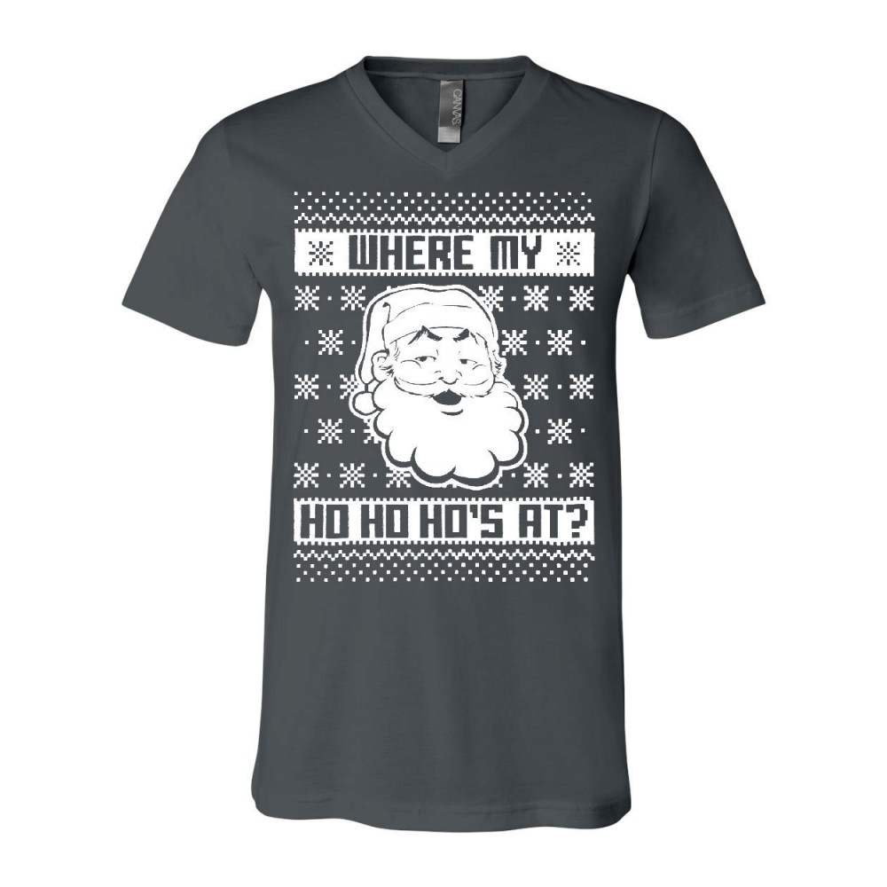 WHERE MY HO HO HO'S AT v-neck tee ugly sweatshirt santa christmas xmas charcoal