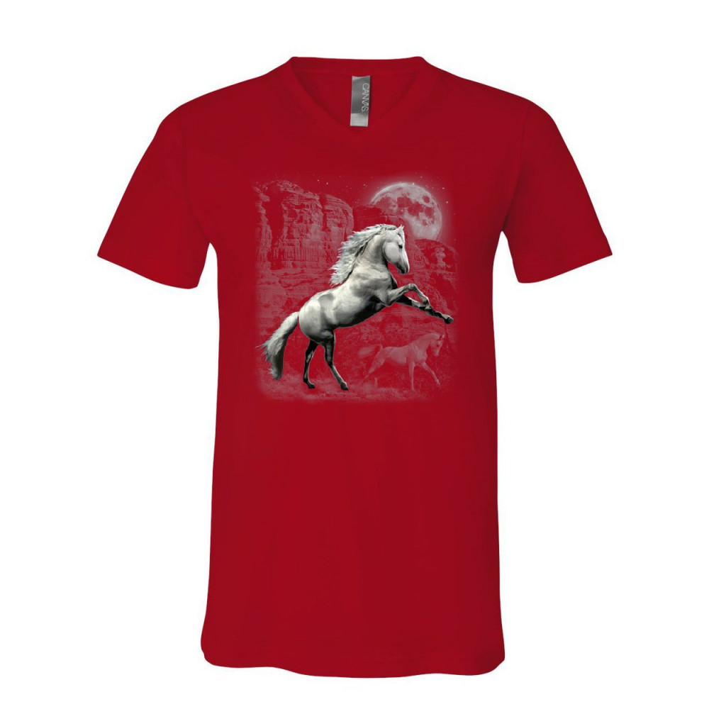WHITE WILD HORSE v-neck t-shirt mustang nature animal lovers wildlife tee red