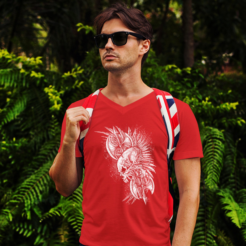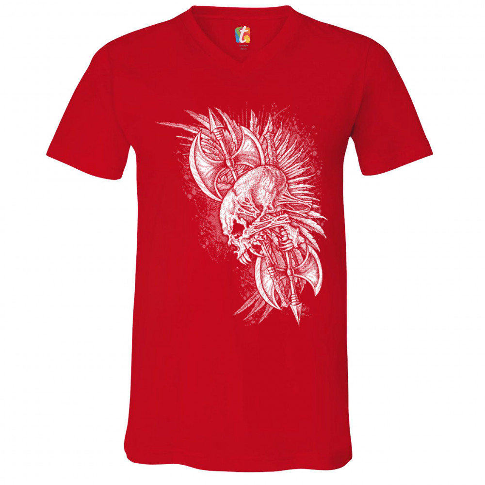 WINGED SKULL v-neck t-shirt viking warrior skeleton labrys axe gothic tee red