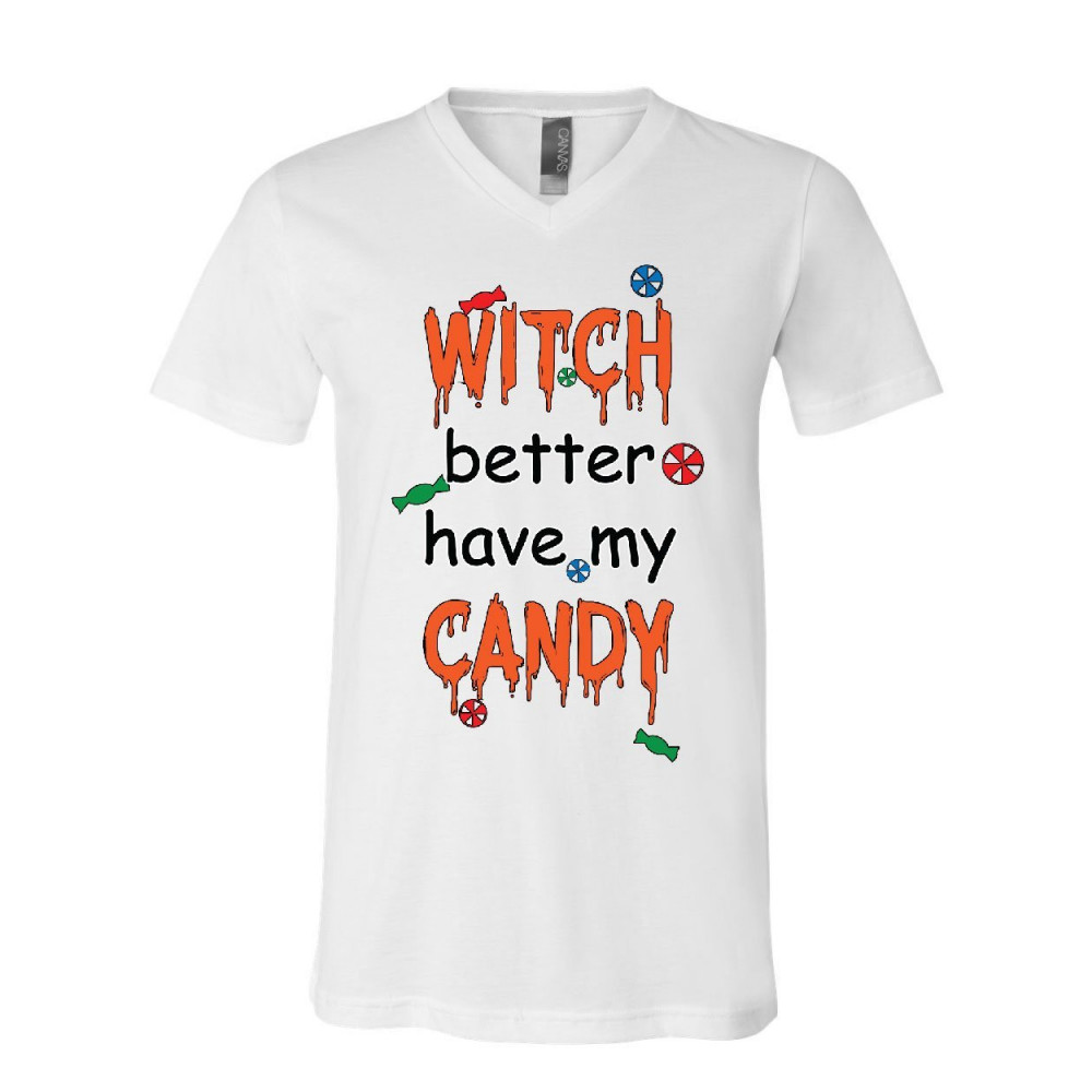 WITCH BETTER HAVE MY CANDY v-neck t-shirt halloween trick or treating tee white