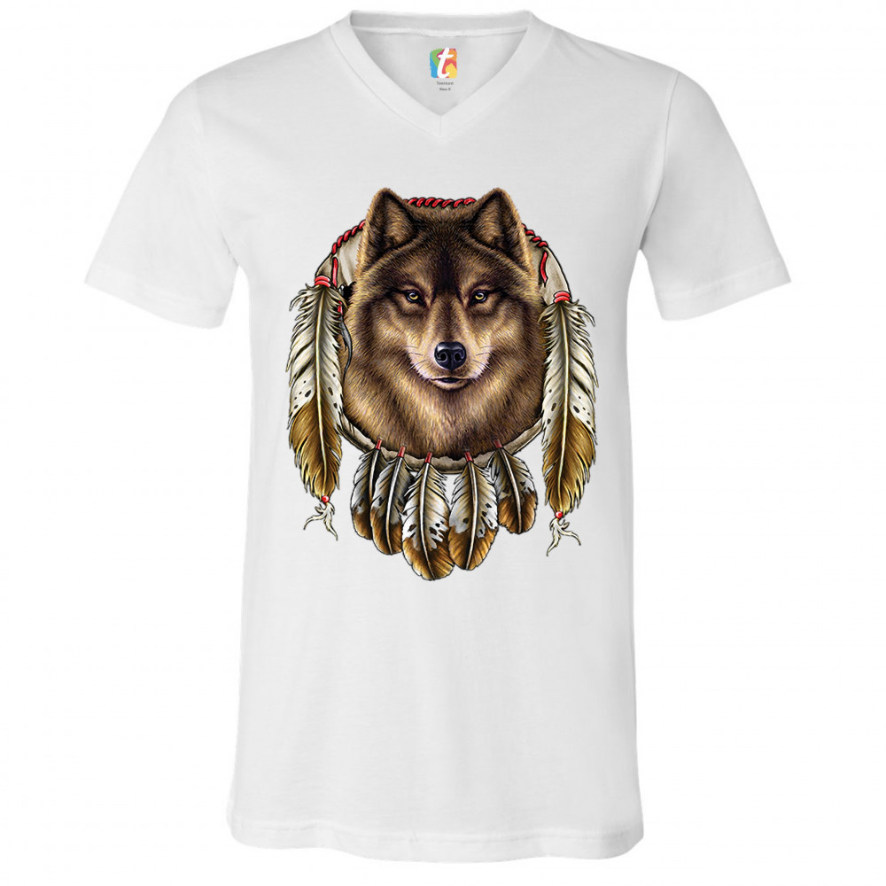 WOLF SPIRIT v-neck t-shirt native american dreamcatcher indigenous tee white