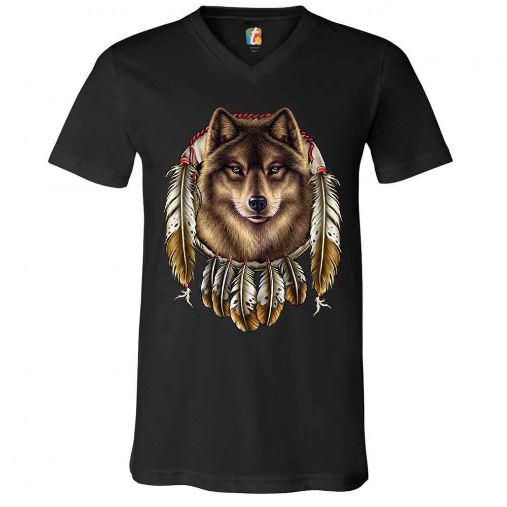 WOLF SPIRIT v-neck t-shirt native american dreamcatcher indigenous tee black