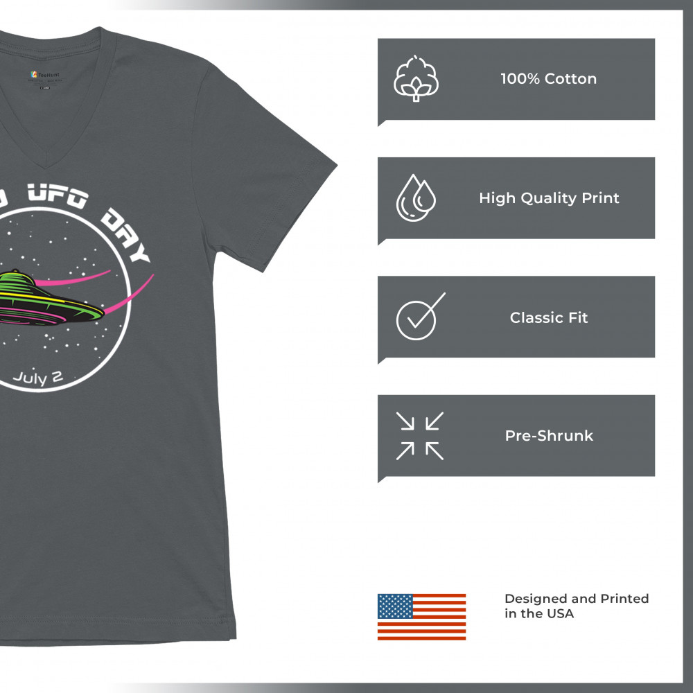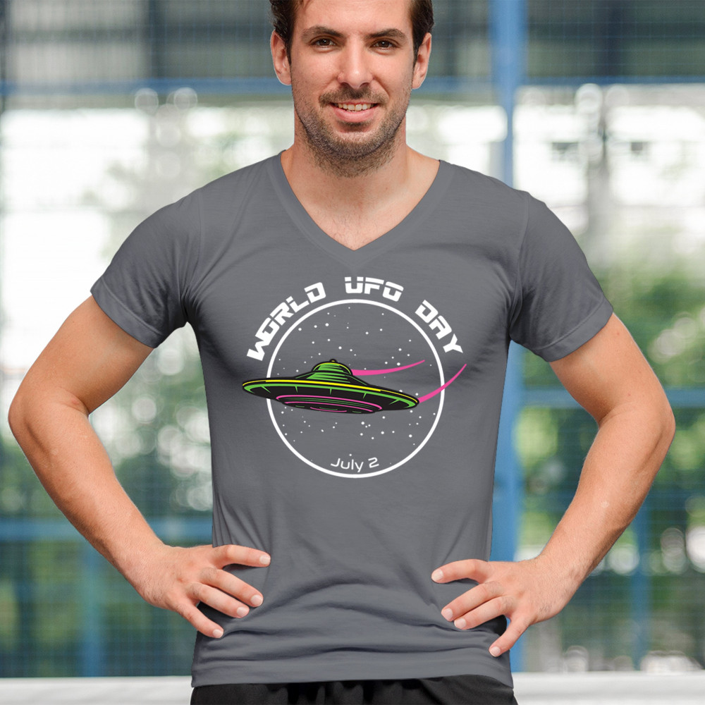 Celebrate World UFO Day on July 2nd with a captivating design featuring a sleek UFO against a starry sky. Perfect for space enthusiasts and UFO lovers.