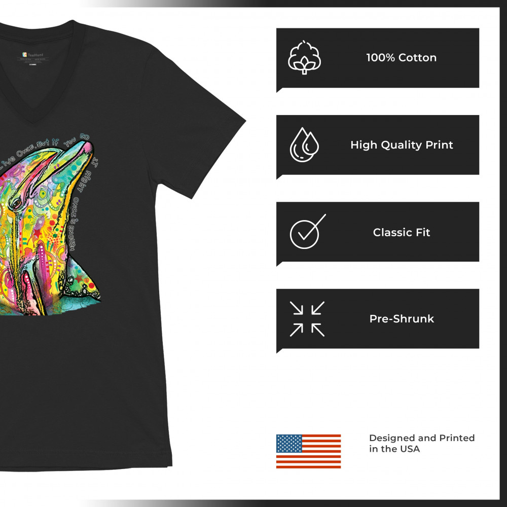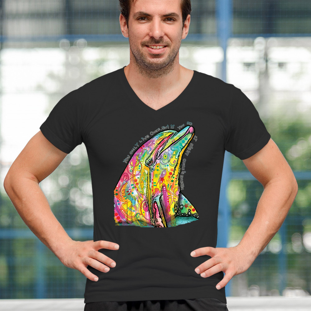 YOU ONLY LIVE ONCE v-neck t-shirt cute neon dolphin dean russo yolo tee black