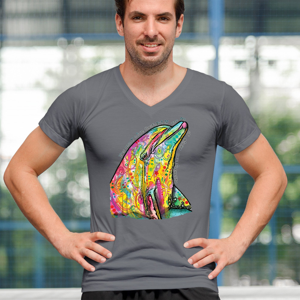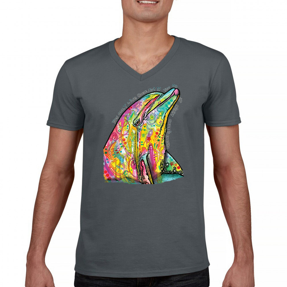 YOU ONLY LIVE ONCE v-neck t-shirt cute neon dolphin dean russo yolo tee charcoal