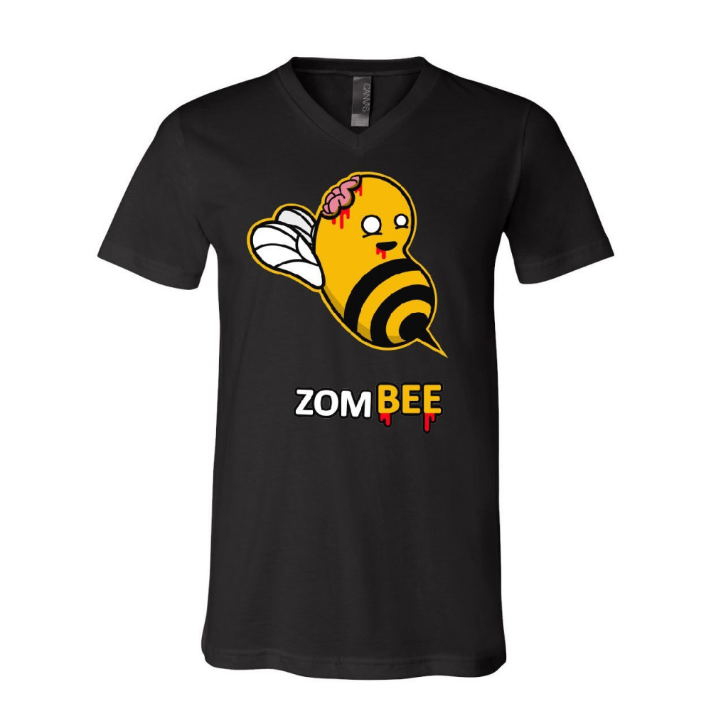 ZOMBEE v-neck t-shirt zombie apocalypse funny dead bee outbreak brains tee black
