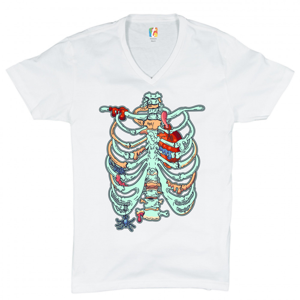 ZOMBIE RIB CAGE v-neck t-shirt all hallows' eve spooky halloween skeleton tee white