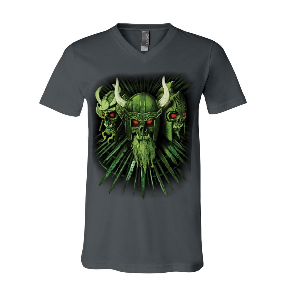 ZOMBIE WARRIORS' SKULLS zombie warrior skulls v-neck t-shirt viking samurai gladiator undead tee charcoal