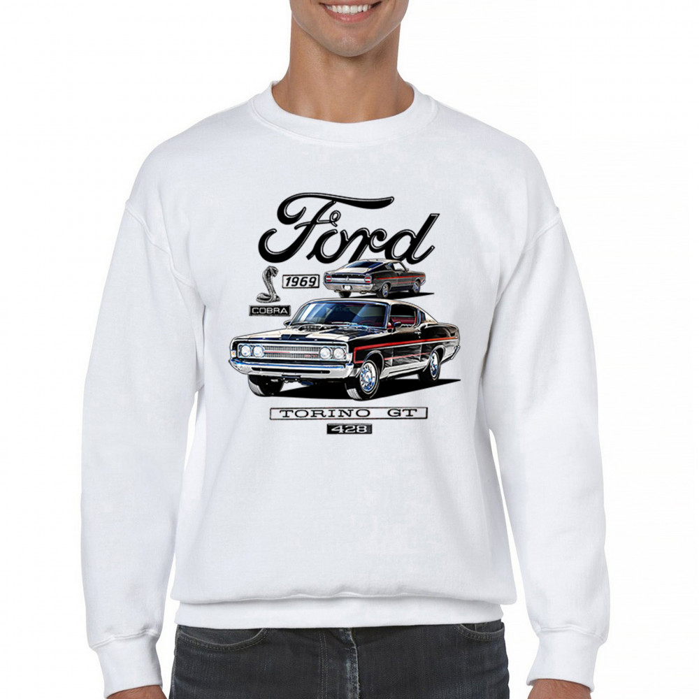 1969 Ford Torino GT Cobra design with racing stripes and Cobra badge—perfect for muscle car fans, Ford collectors, and show displays.