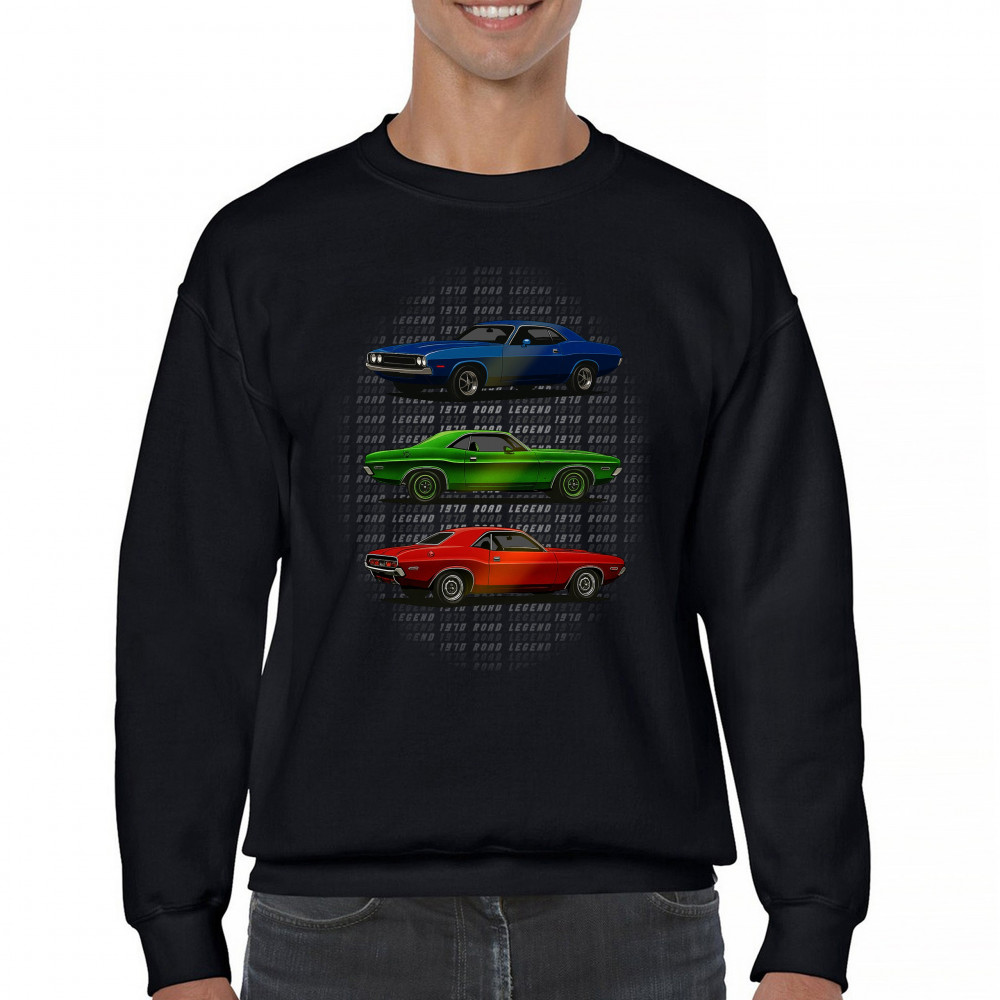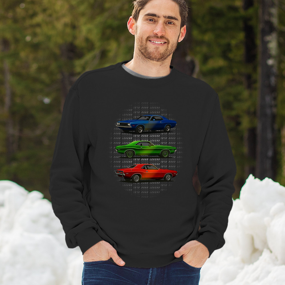 Three bold 1970 muscle cars, stacked in red, green, and blue, celebrate vintage power and road legend status. This retro-inspired design captures the essence of American car culture—made for gearheads, V8 fans, and anyone who lives for classic performance, heritage, and style.