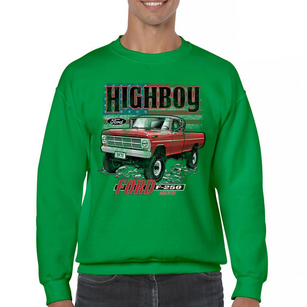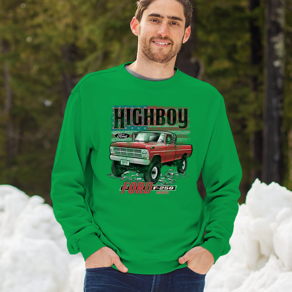 This vintage truck design features a 1971 Ford F-250 Highboy 4x4 with a classic lifted stance and patriotic flag background. Bold and nostalgic, it’s perfect for classic truck fans, 4x4 lovers, off-roaders, and collectors who appreciate American V8 tradition. Show it off at truck shows, meets, or cruise nights.