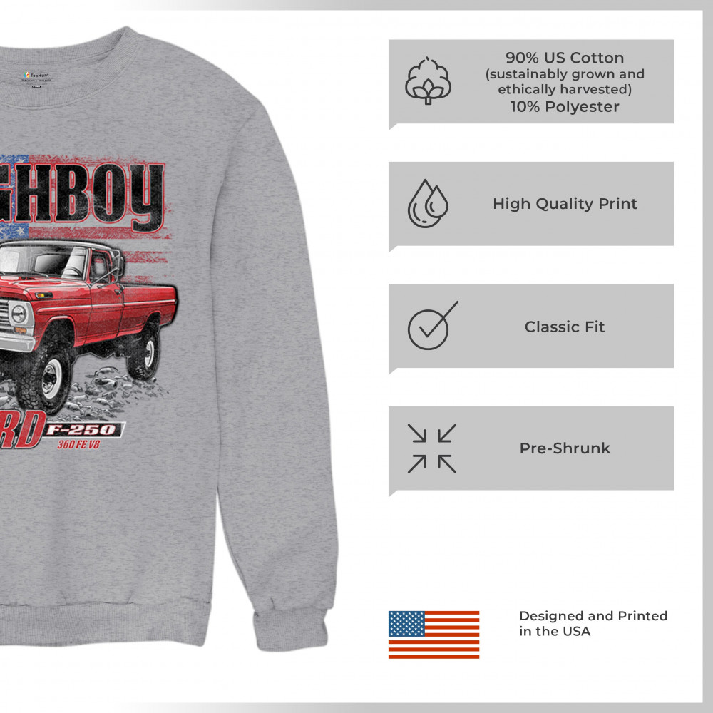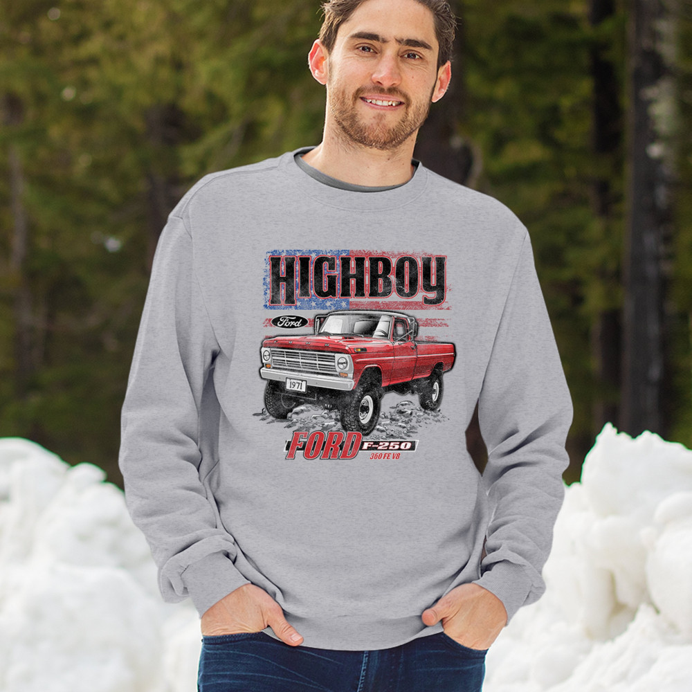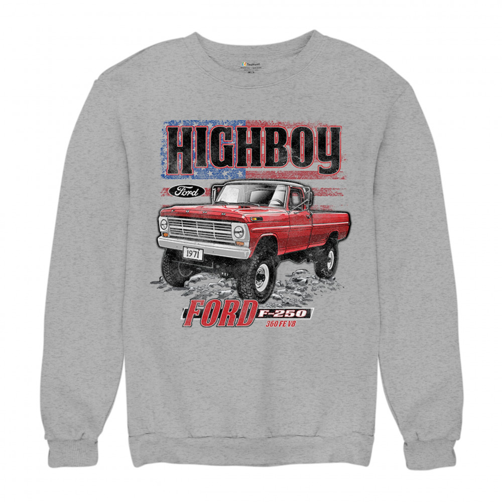 This vintage truck design features a 1971 Ford F-250 Highboy 4x4 with a classic lifted stance and patriotic flag background. Bold and nostalgic, it’s perfect for classic truck fans, 4x4 lovers, off-roaders, and collectors who appreciate American V8 tradition. Show it off at truck shows, meets, or cruise nights.