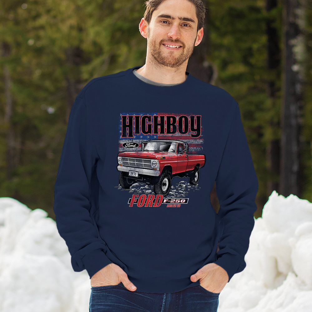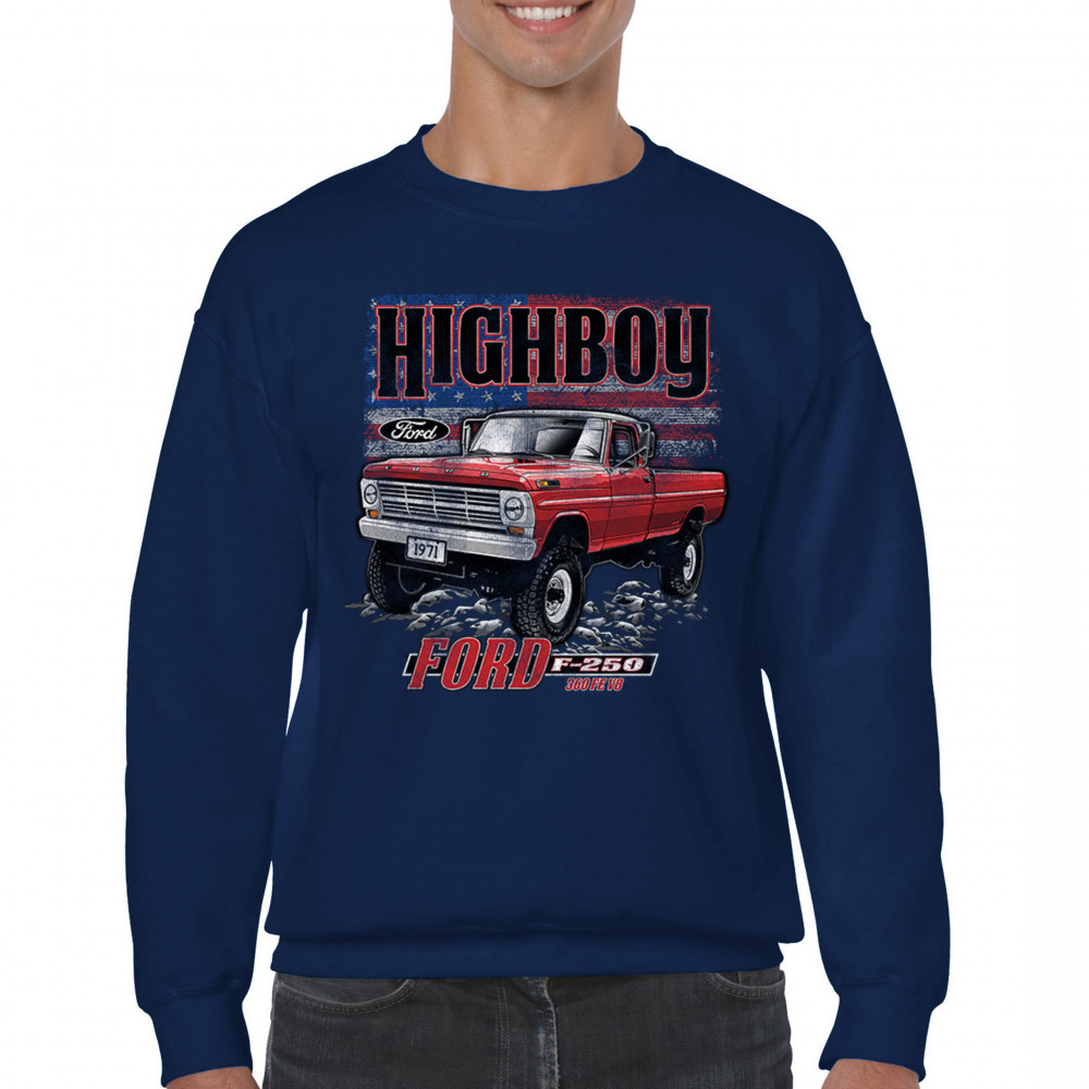 1971 FORD F-250 HIGHBOY sweatshirt classic american pickup truck 4x4 crewneck navy blue