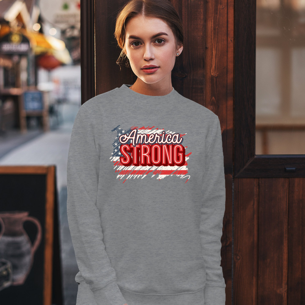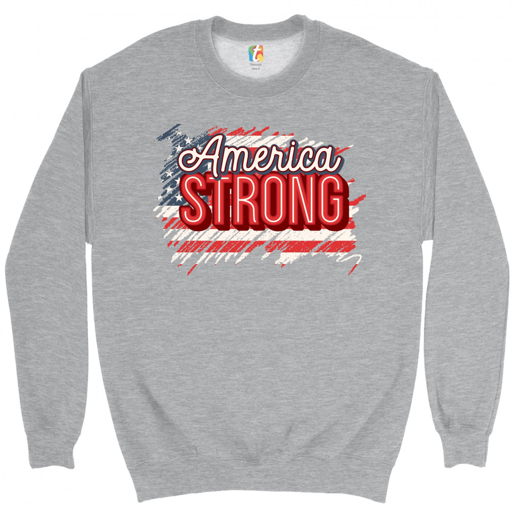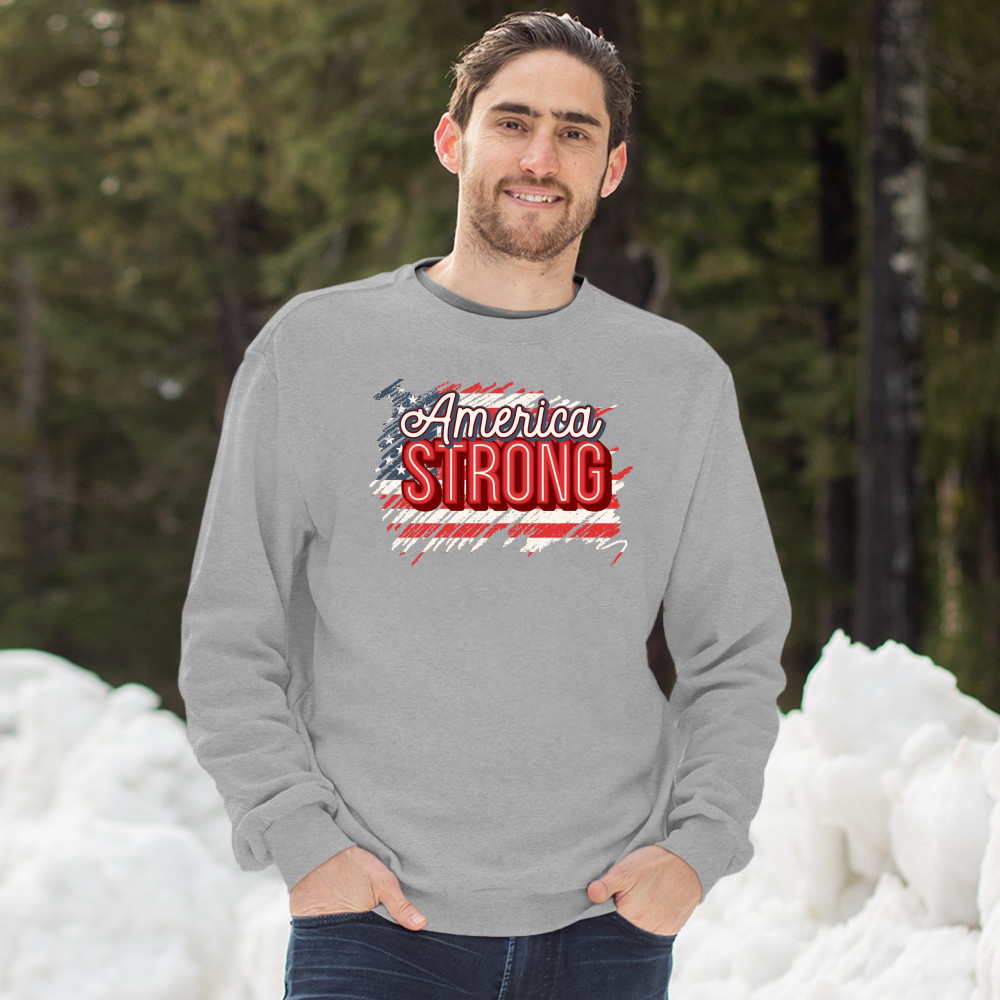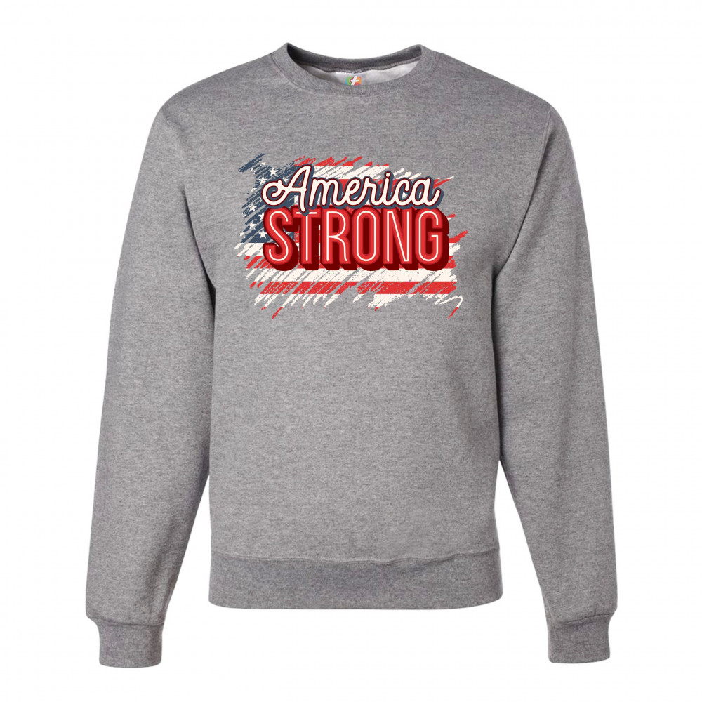 AMERICA STRONG sweatshirt distressed american flag 4th of july usa crewneck gray