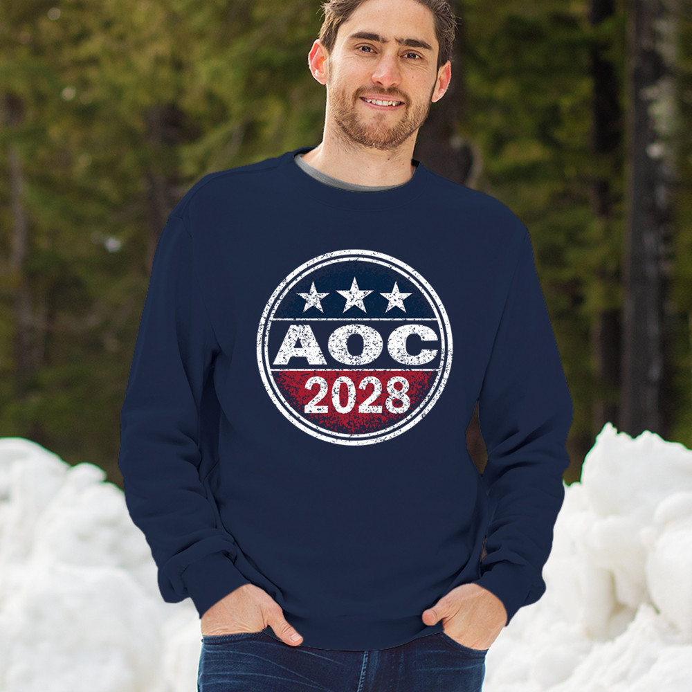 Show support for AOC 2028 with this patriotic distressed badge design. Great for progressives, rallies, events, and young political activists.