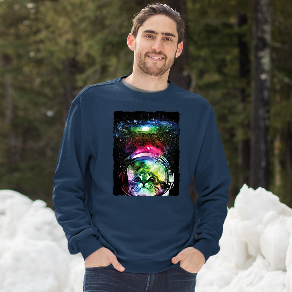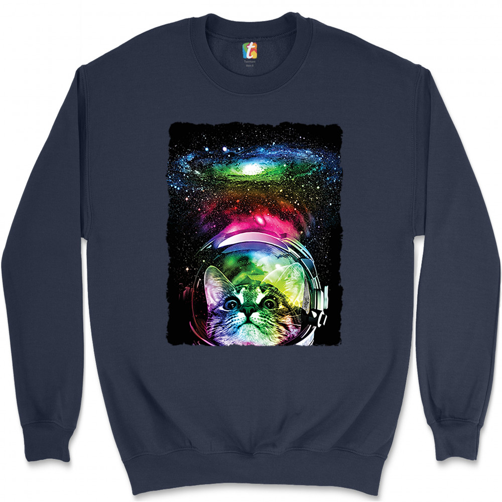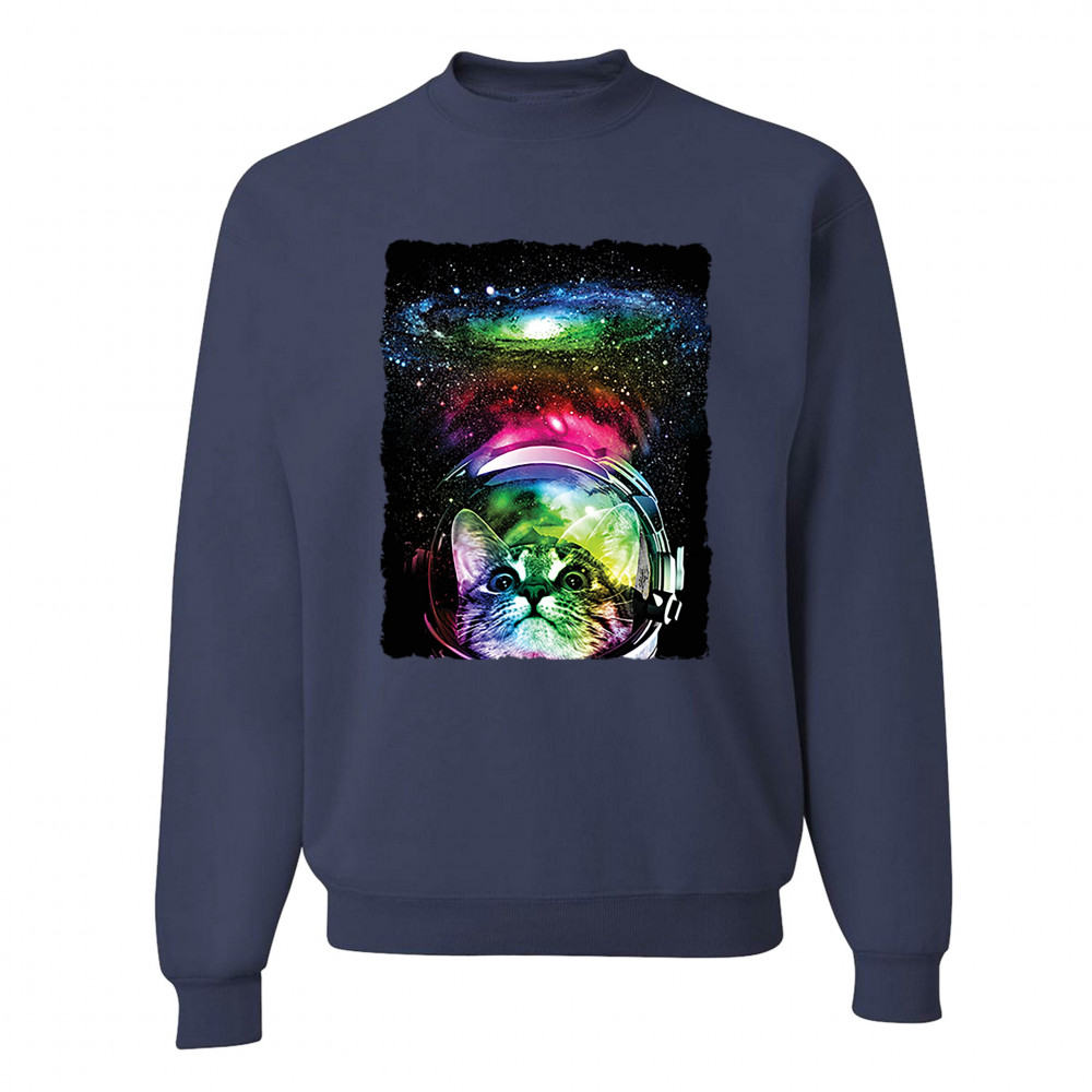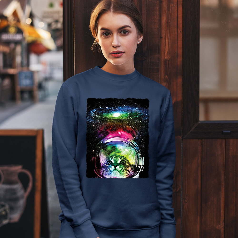 ASTRONAUT CAT sweatshirt space kitty crewneck navy blue