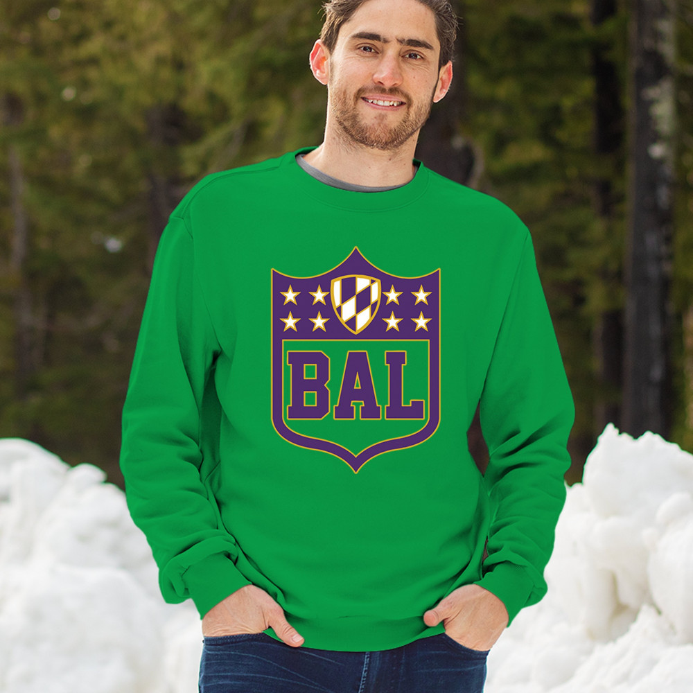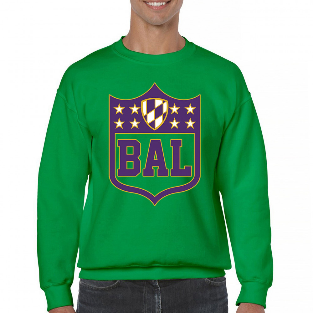 BALTIMORE SHIELD crewneck sweatshirt die hard fantasy football fan game day green