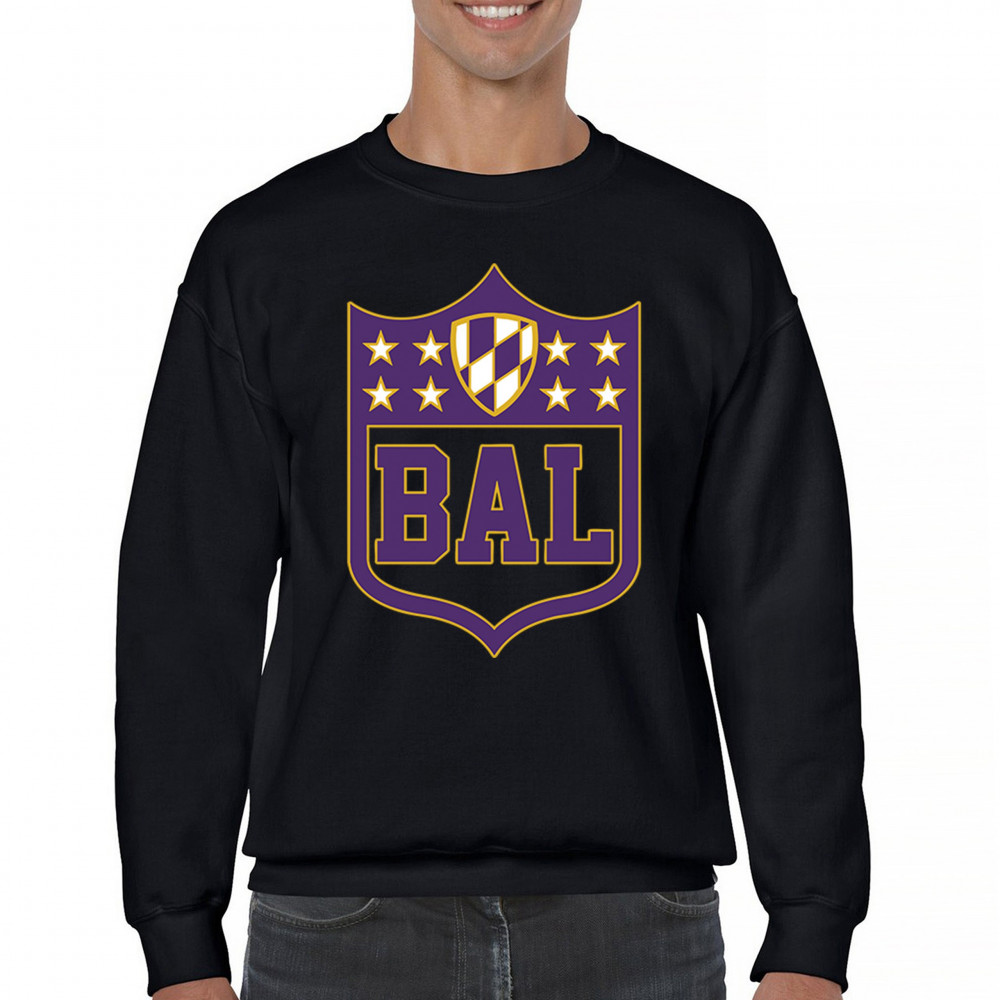 Celebrate your Baltimore pride with this bold BAL shield design. Perfect for football season, this Baltimore athletic shirt blends retro Baltimore football shirt style with collegiate energy. From tailgate party Baltimore tees to vintage BAL sports shirts, it’s built for fans who thrive on touchdown vibes, football culture, and Baltimore city pride. A shield logo Baltimore shirt every fan will love.