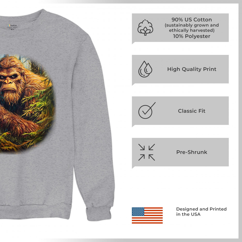 Detailed Bigfoot design with forest mystery vibes for cryptid fans, hikers, and Sasquatch lovers. Bold, outdoorsy, and perfect for adventurers.