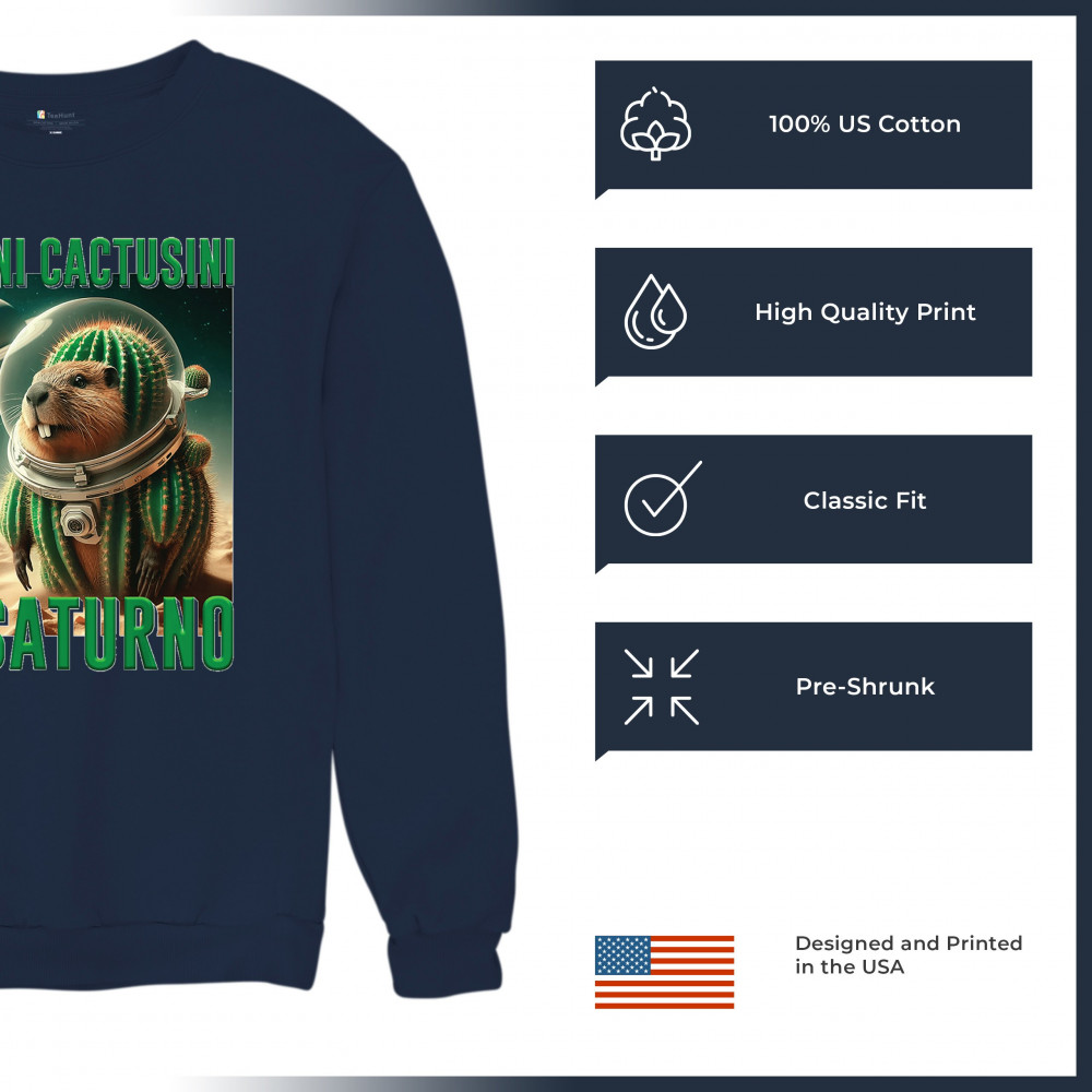 Blast off with Bobrini Cactusini Su Saturno—a cactus-beaver astronaut floating in pure brainrot. This cursed design blends space meme aesthetics, weirdcore fashion, viral Gen Z humor, and surreal animal mashups. It’s the ultimate tee for lovers of ironic internet chaos and absurdist TikTok trends.