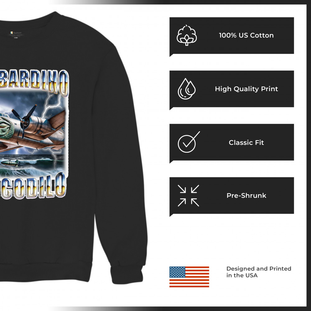 Bombardino Crocodilo is meme fashion with teeth. Featuring a crocodile-faced bomber jet flying through internet chaos, this Italian Brainrot masterpiece blends weirdcore visuals, cursed meme logic, and Gen Z humor. Perfect for fans of surreal fashion, viral absurdity, and TikTok-driven ironic style.