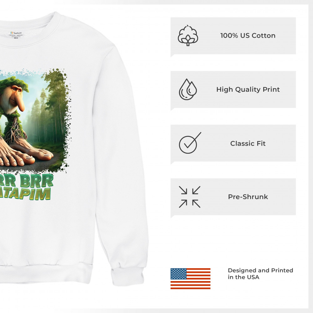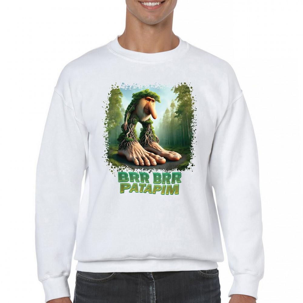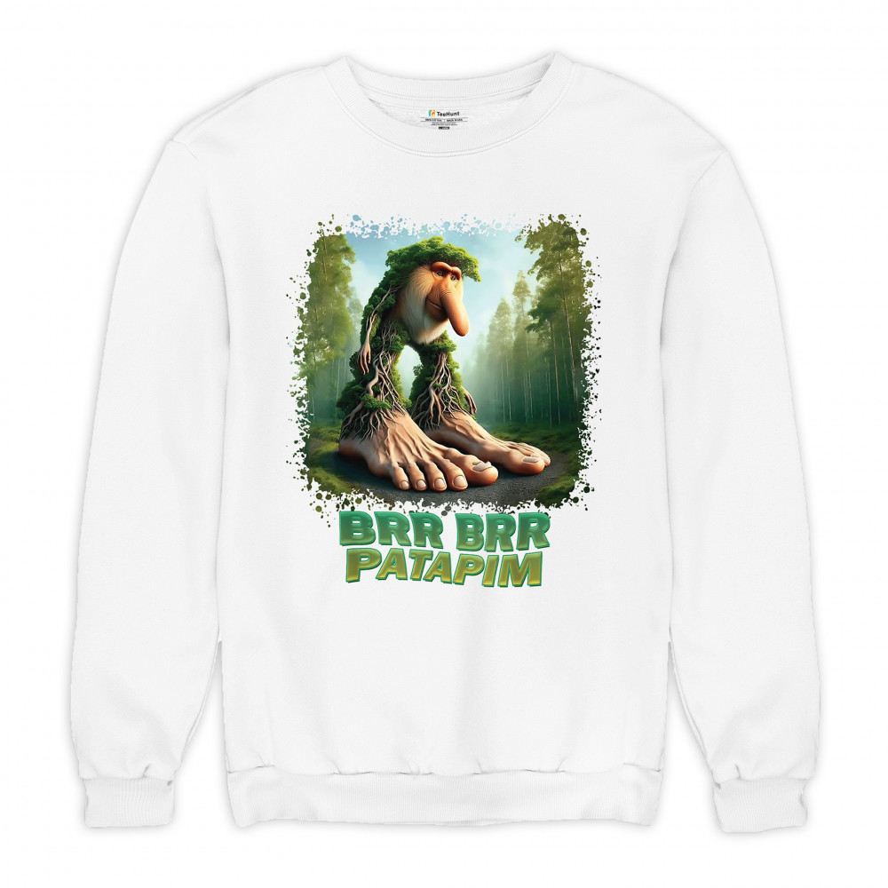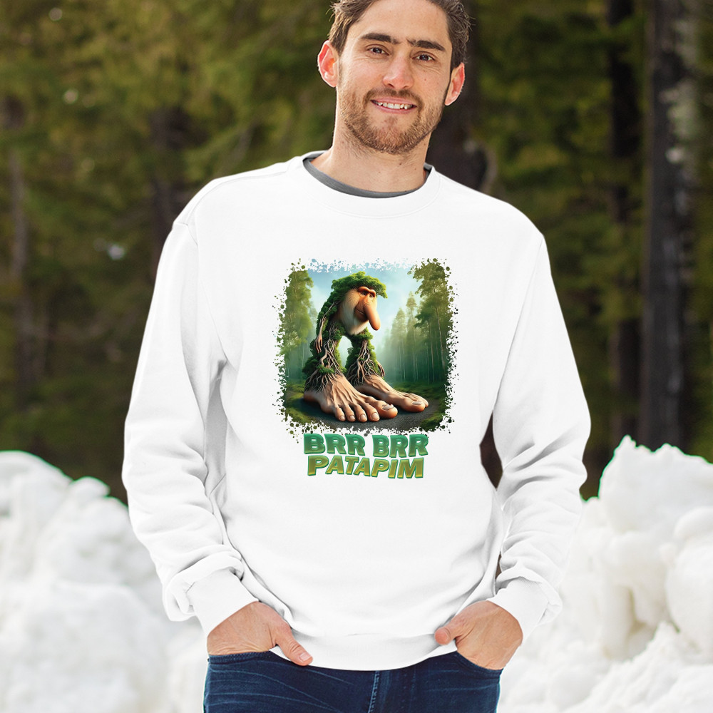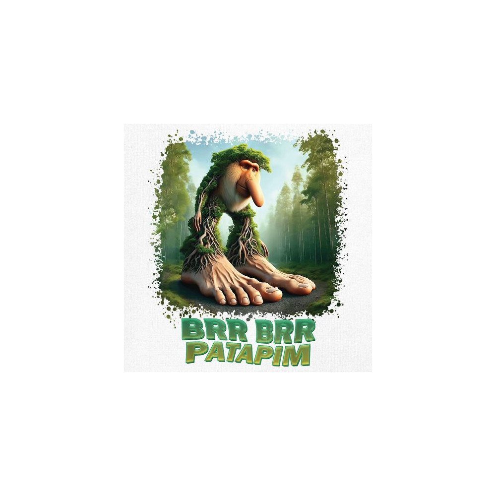 Brr Brr Patapim is forest-core gone full brainrot. Featuring a massive-footed tree-beast with cryptid energy, this design blends cursed meme culture, TikTok humor, weirdcore visuals, and surreal Gen Z fashion. It’s ideal for fans of absurd monster mashups and internet chaos fits.
