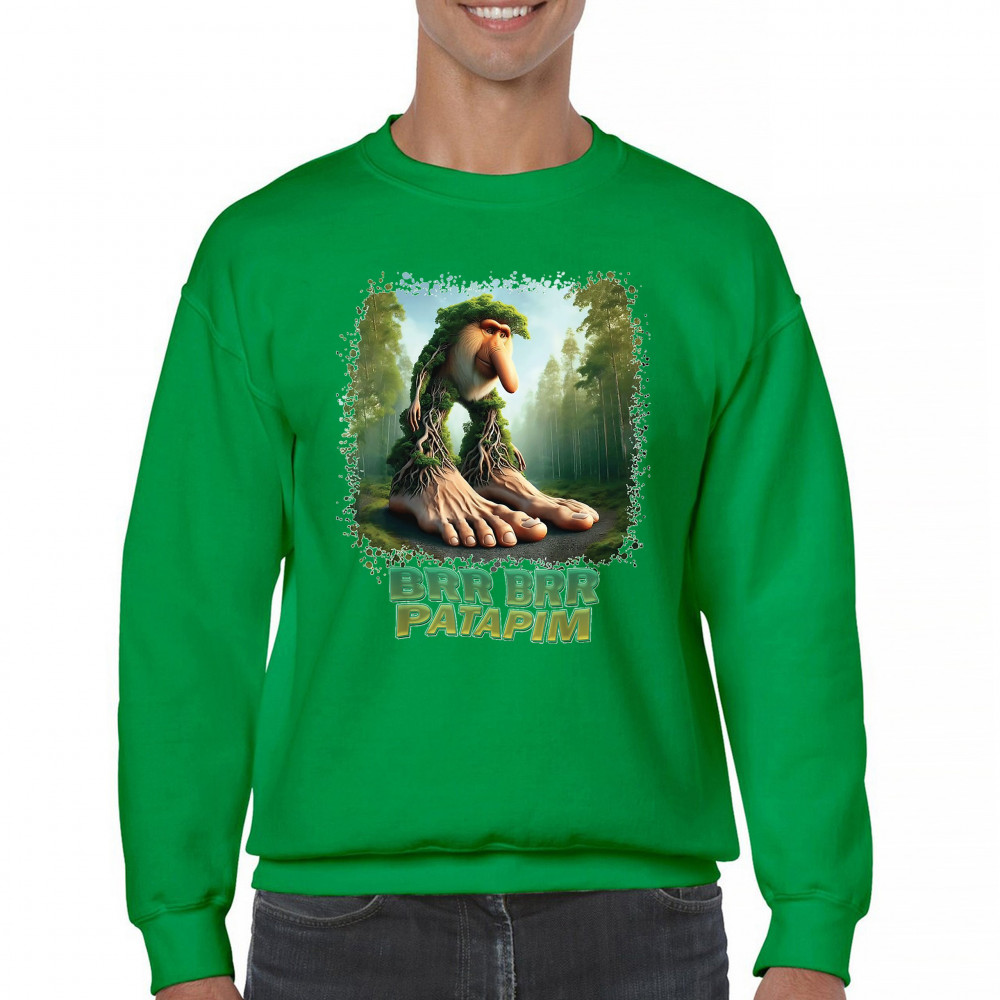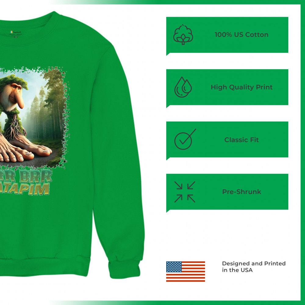 Brr Brr Patapim is forest-core gone full brainrot. Featuring a massive-footed tree-beast with cryptid energy, this design blends cursed meme culture, TikTok humor, weirdcore visuals, and surreal Gen Z fashion. It’s ideal for fans of absurd monster mashups and internet chaos fits.