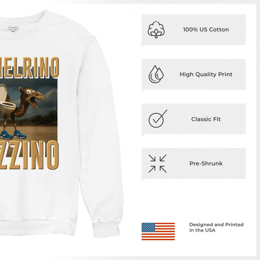 Camelrino Tazzino delivers a double flush of internet madness. With a toilet body, running shoes, and a camel's face frozen in horror, this meme mashup blends cursed-core design, viral TikTok humor, surreal animal chaos, and Gen Z meme fashion. Built for weirdcore lovers and internet irony addicts.
